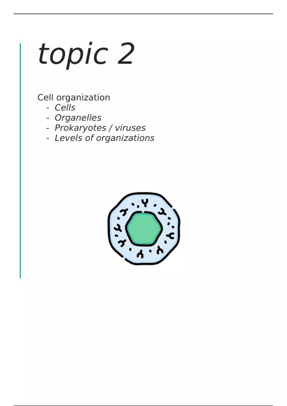 Summary Eduquas (England) core concept 1.1 Cell biology and organisation