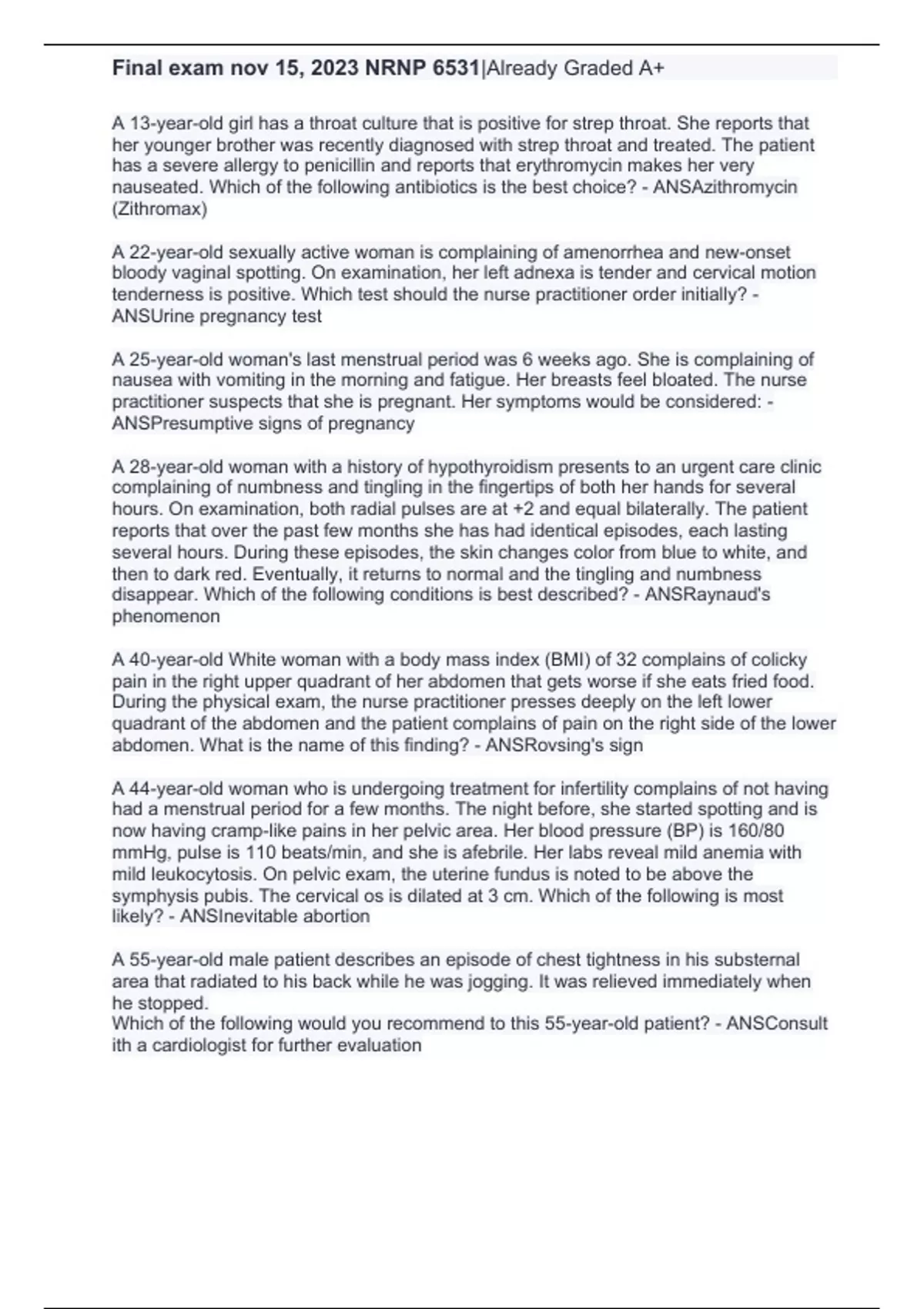 Final exam nov 15, 2023 NRNP 6531|Already Graded A+