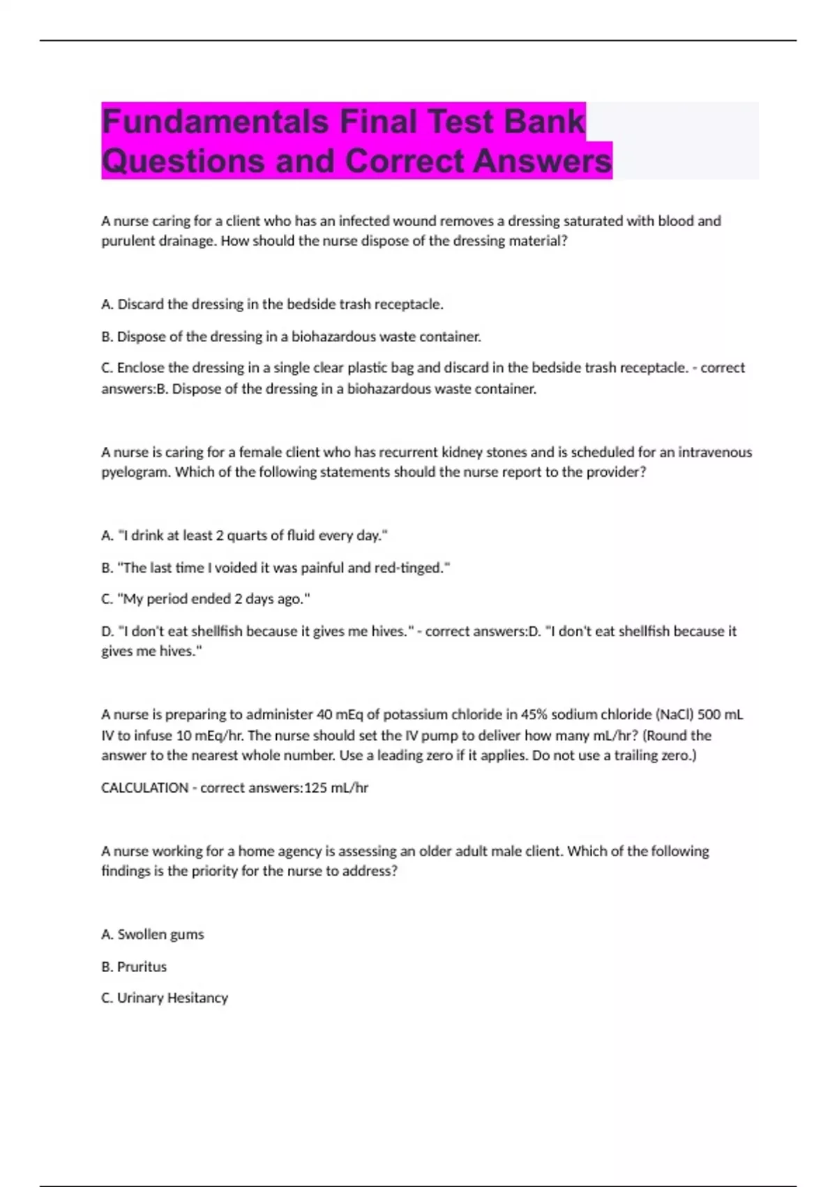 Questions and Correct Answers