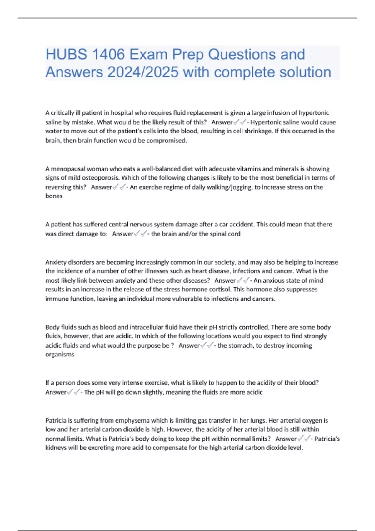 HUBS 1406 Exam Prep Questions and Answers 2024/2025 with complete solution