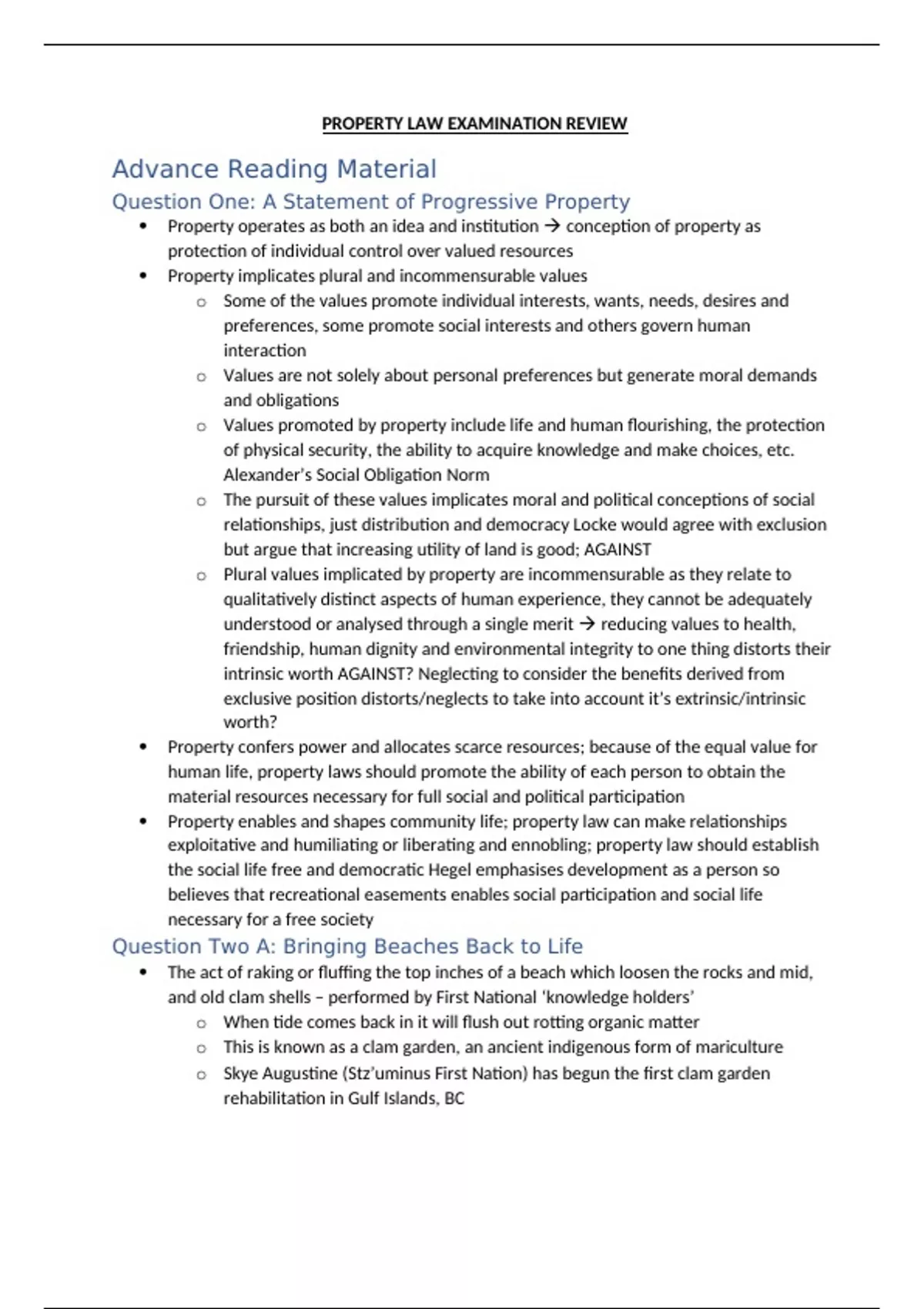 PROPERTY LAW EXAMINATION REVIEW
