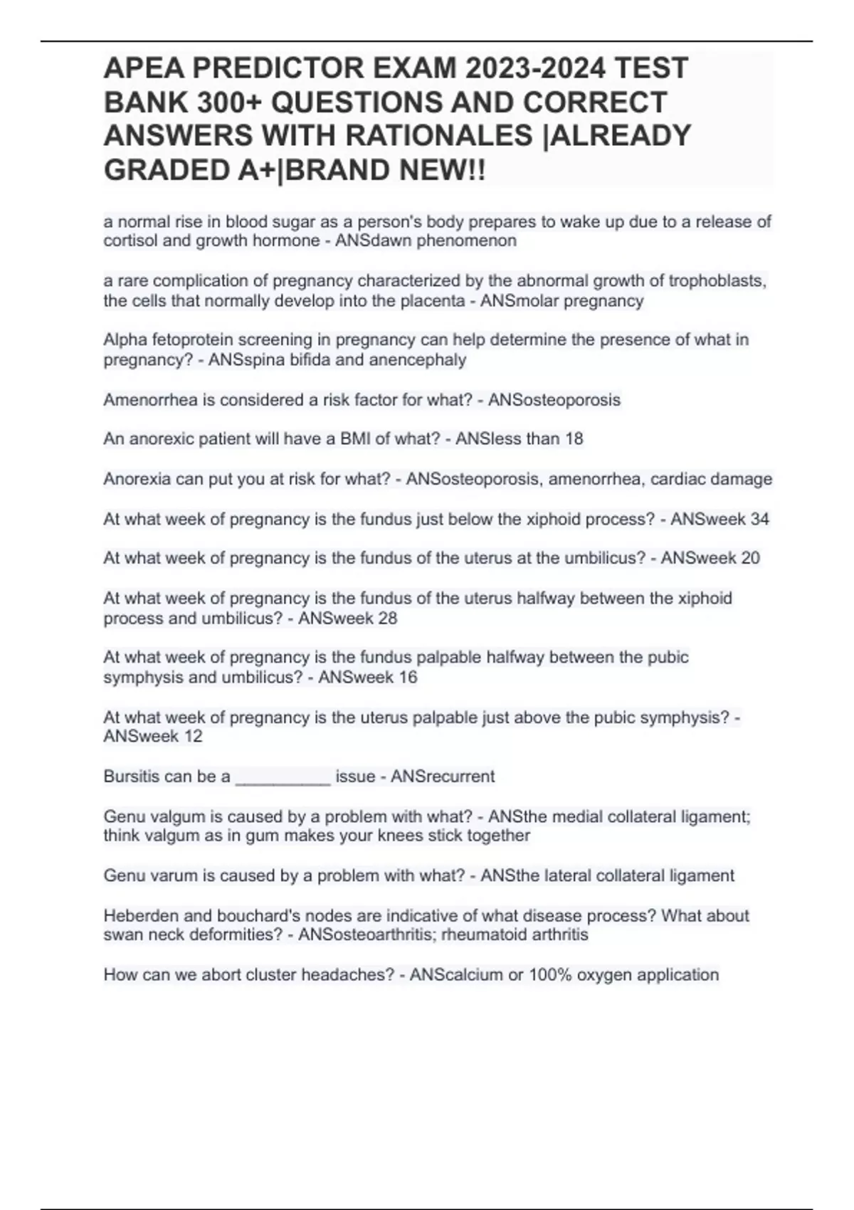 APEA PREDICTOR EXAM TEST BANK 300+ QUESTIONS AND CORRECT ANSWERS WITH RATIONALES ALREADY GRADED A+BRAND NEW!!
