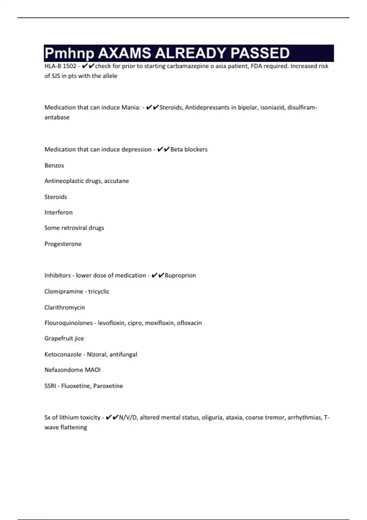HLA-B 1502 - ✔✔check for prior to starting carbamazepine o asia patient, FDA required. Increased risk
