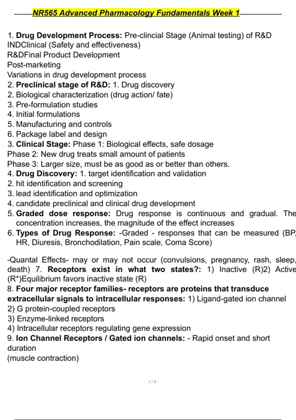 Nr 565 / Nr565 advanced pharmacology fundamentals week 1 Quiz -100% correct- Latest 2023/2024