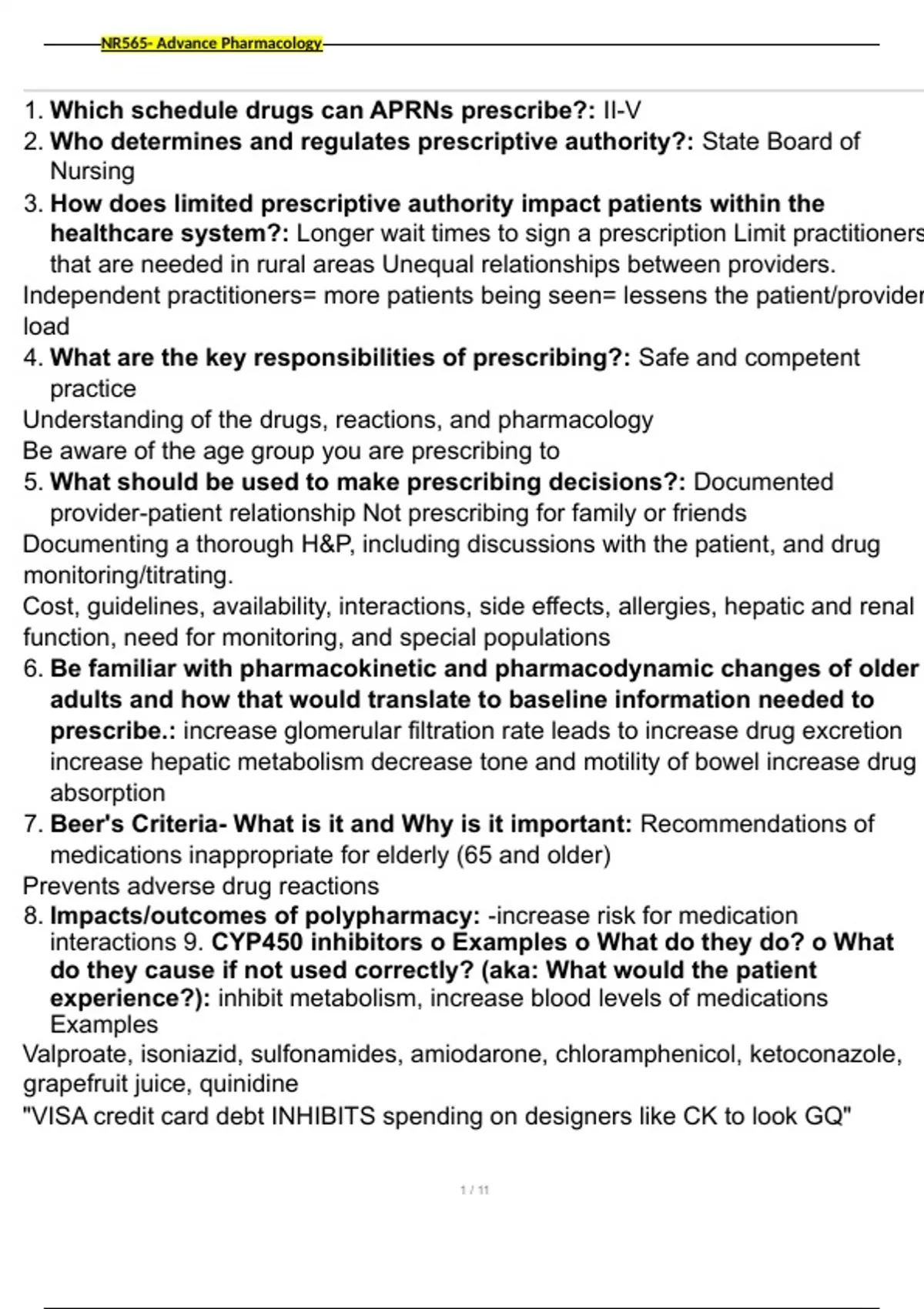 NR565- Advance Pharmacology Questions With Complete Solutions