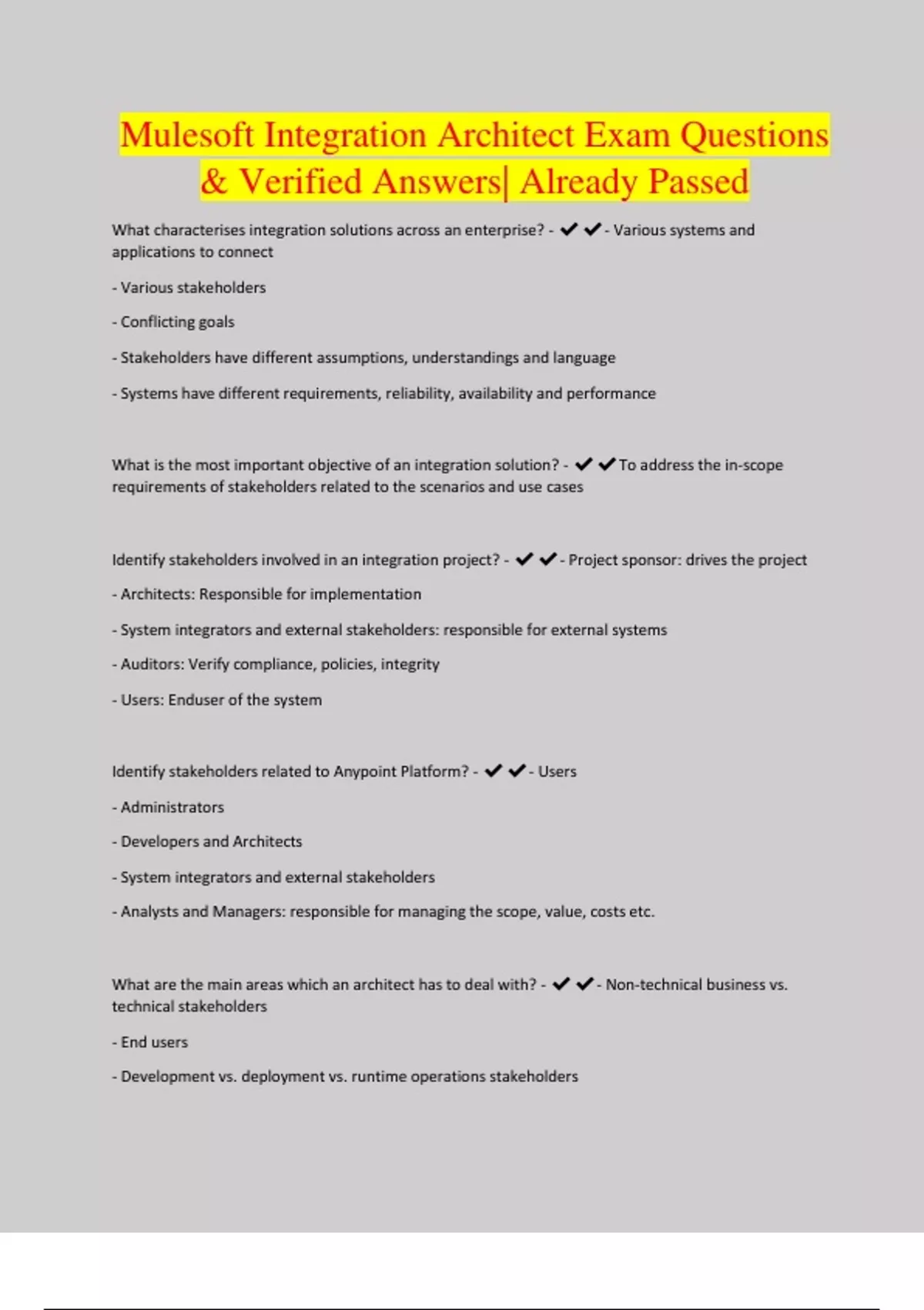 Mulesoft Integration Architect Exam Questions & Verified Answers| Already Passed