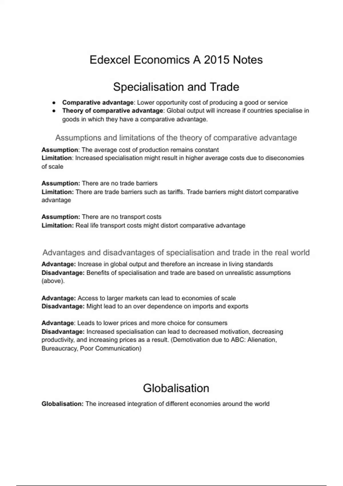 Edexcel Economics A 2015 Notes