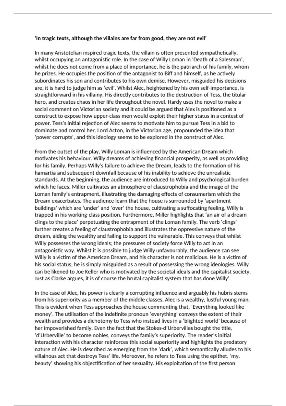 whilst occupying an antagonistic role. In the case of Willy Loman in ‘Death of a Salesman’,