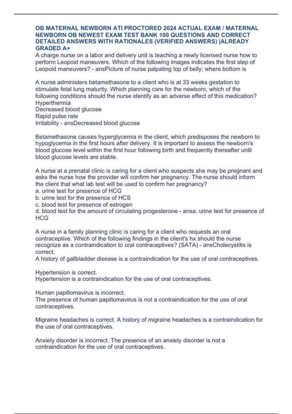 ,OB MATERNAL NEWBORN ATI PROCTORED 2024 ACTUAL EXAM / MATERNAL