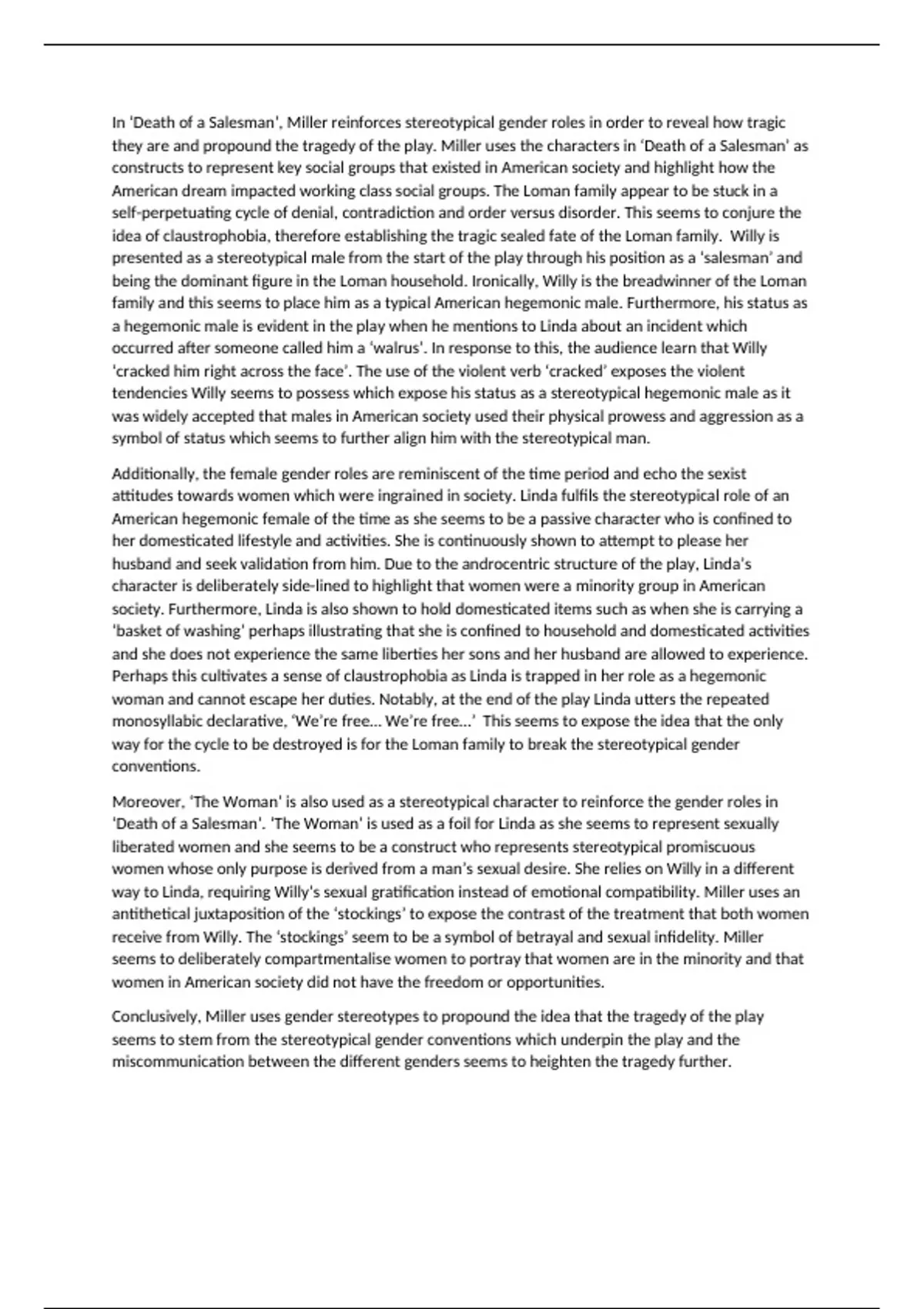 Conclusively, Miller uses gender stereotypes to propound the idea that the tragedy of the play