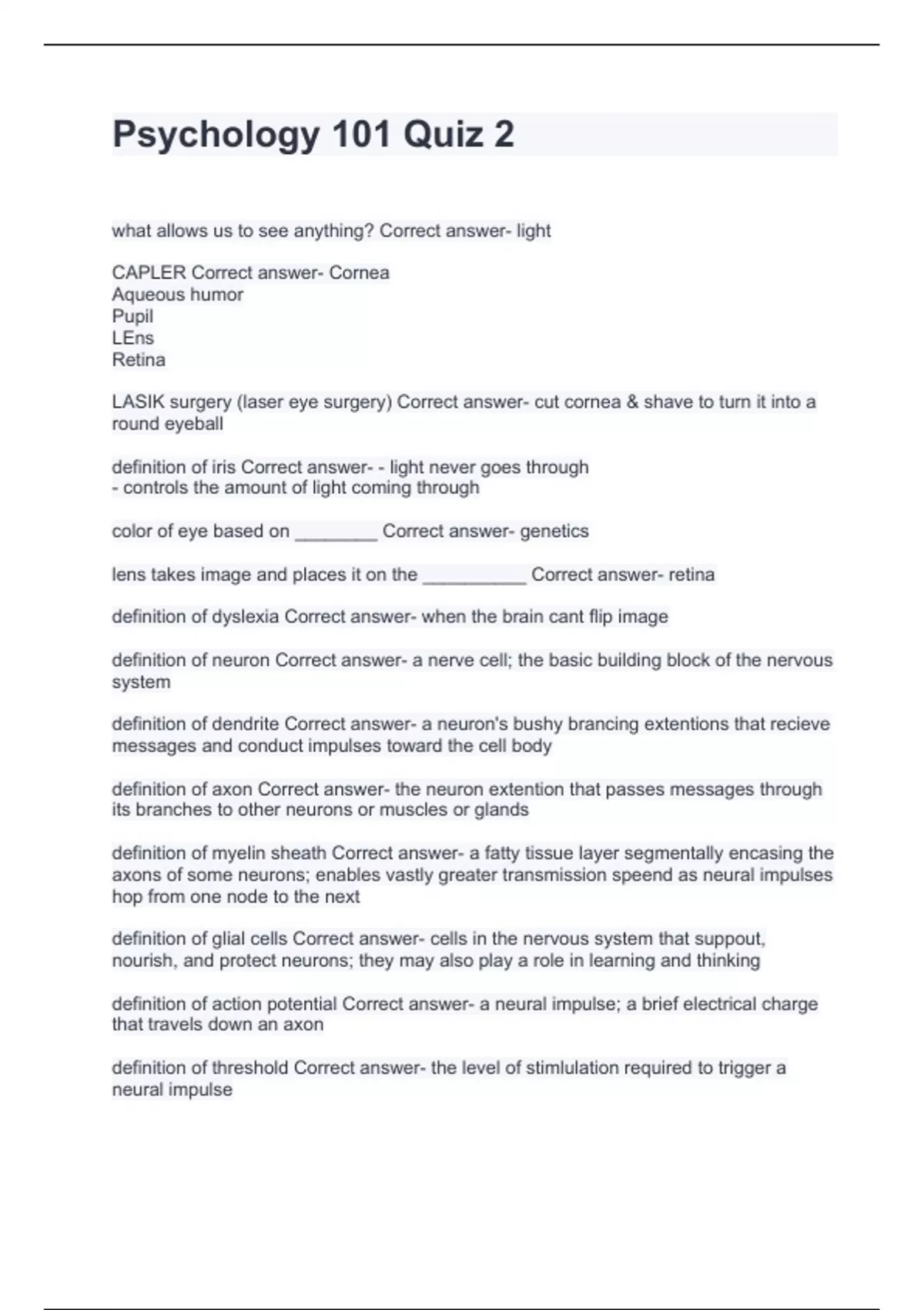 psychology 101 quiz 2 updated 2024 qa solved 100