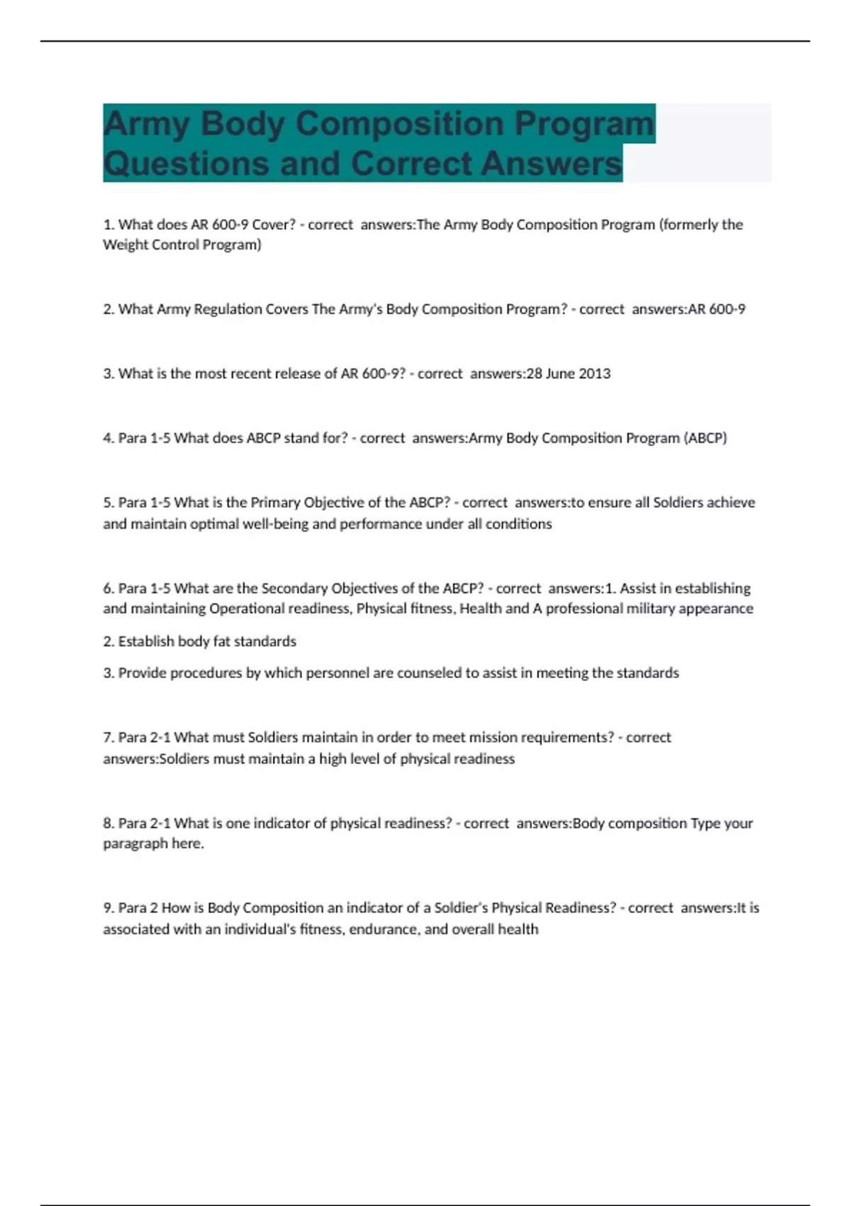 Body Composition Program/ Military Appearance Program QUESTIONS WITH COMPLETE SOLUTIONS