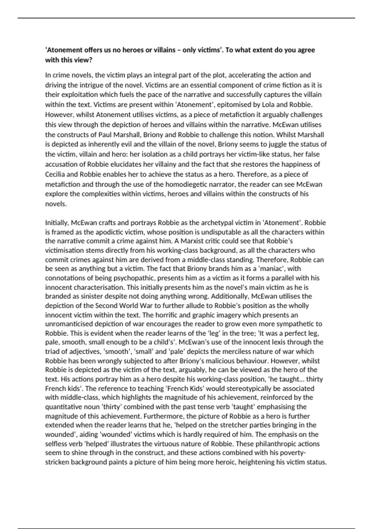 ‘Atonement offers us no heroes or villains – only victims’. To what extent do you agree
