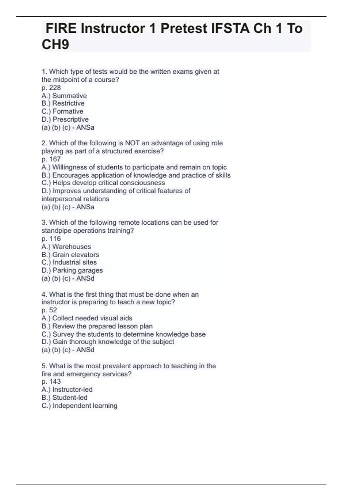 FIRE Instructor 1 Pretest IFSTA Ch 1 To CH9