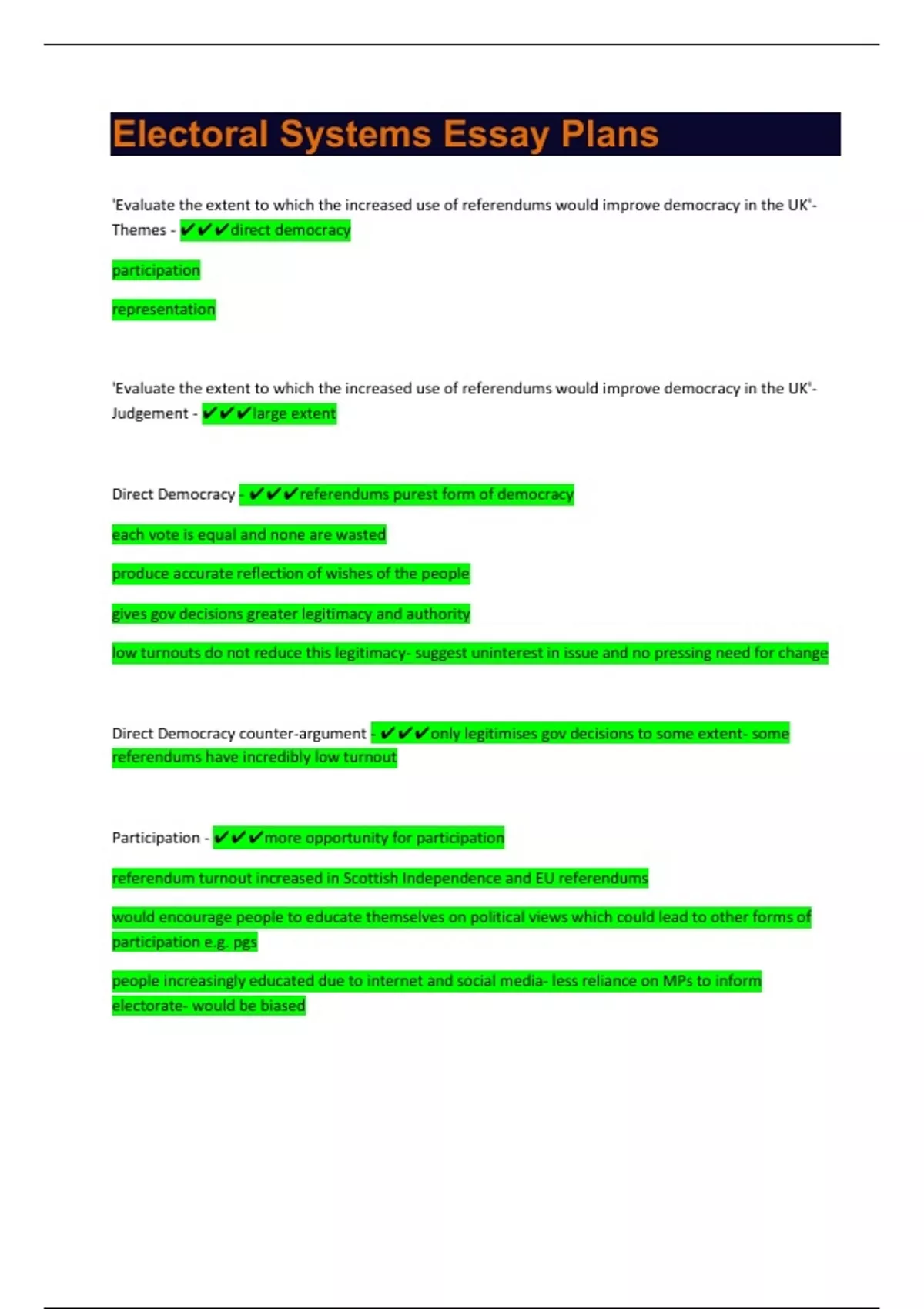 'Evaluate the criticisms that have been leveled against the use of referendums in UK'- Themes - ✔✔✔
