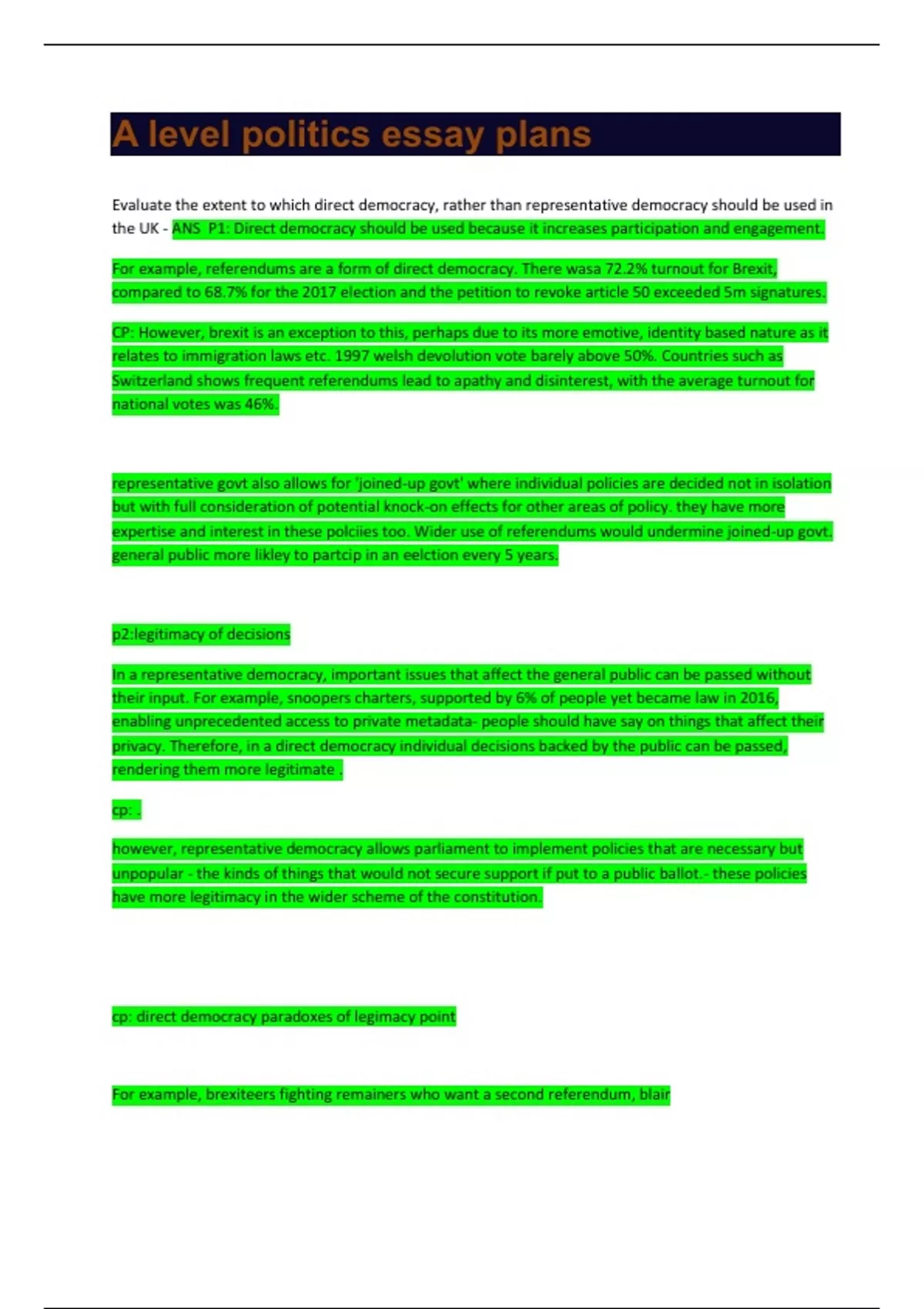 the UK - ANS P1: Direct democracy should be used because it increases participation and engagement.
