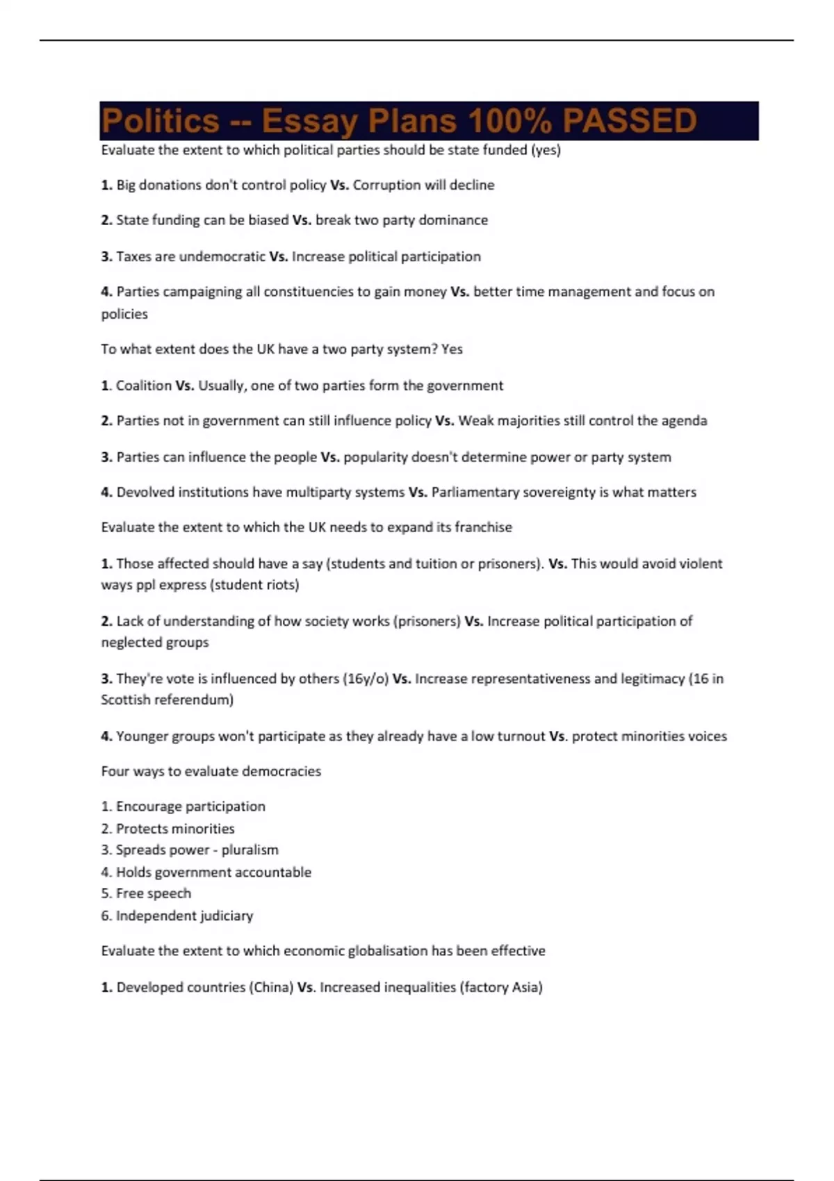 Evaluate the extent to which political parties should be state funded (yes)