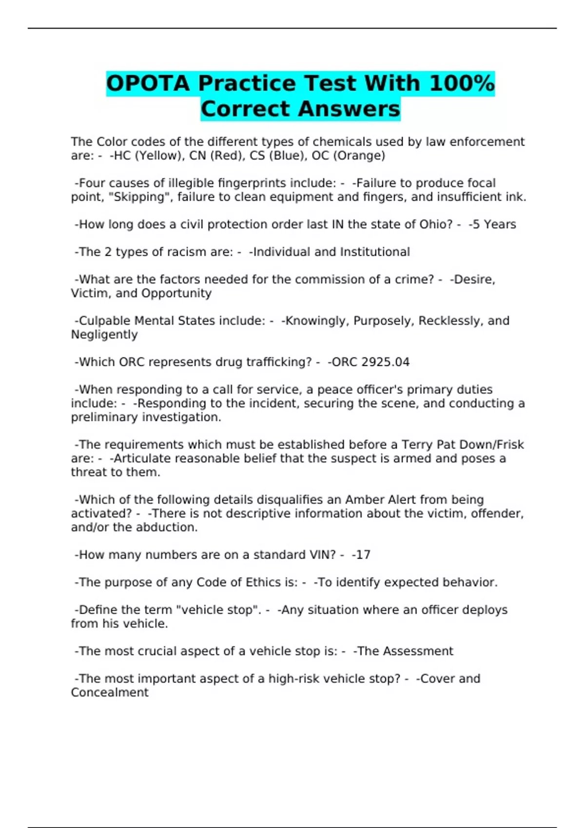 OPOTA Practice Test With 100%