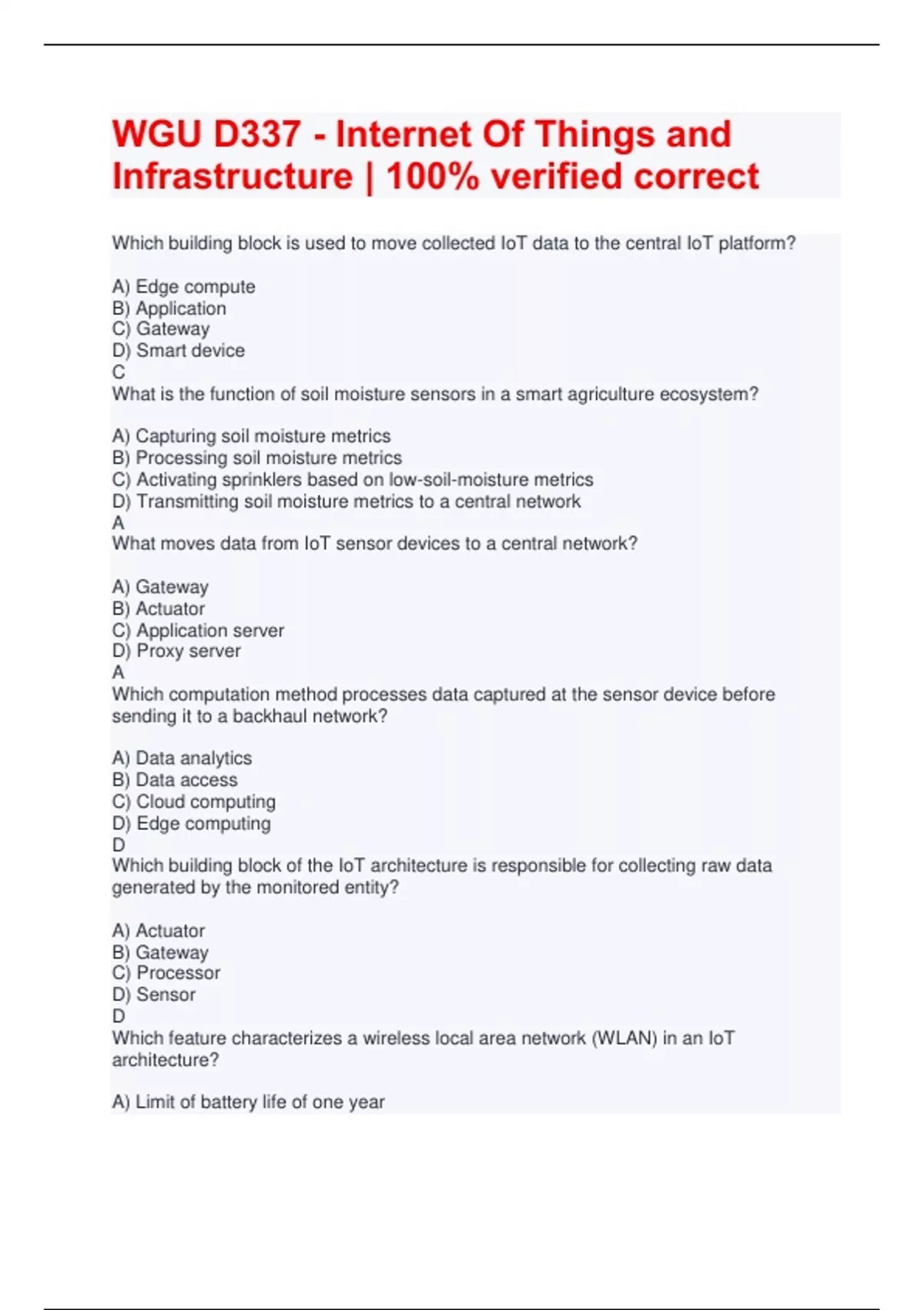 WGU D337 - Internet Of Things and Infrastructure | 100% verified correct