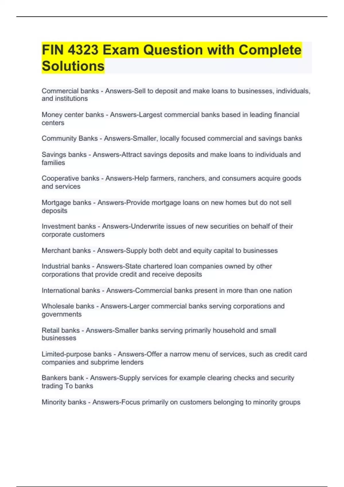 Minority banks - Answers-Focus primarily on customers belonging to minority groups