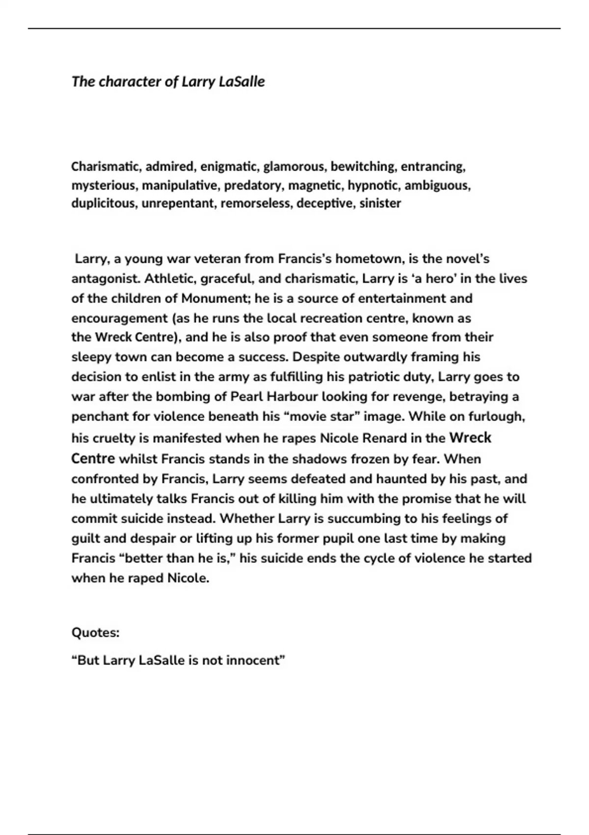 Larry LaSalle GCSE English Literature "Heroes" revision notes