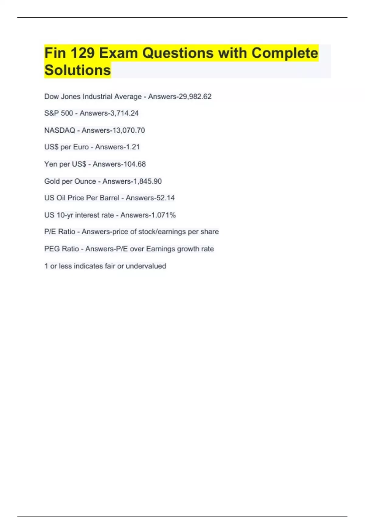 Dow Jones Industrial Average - Answers-29,982.62