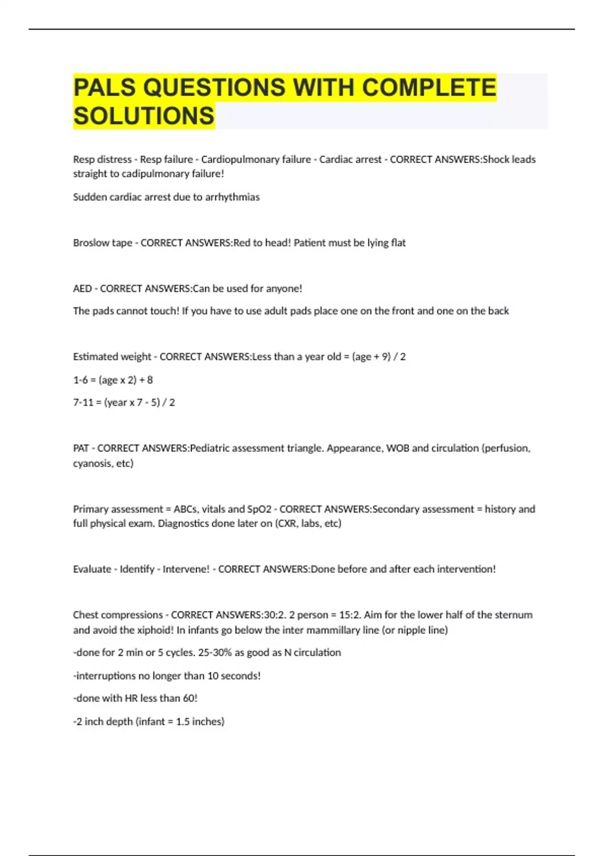 PAT - CORRECT ANSWERS:Pediatric assessment triangle. Appearance, WOB and circulation (perfusion,