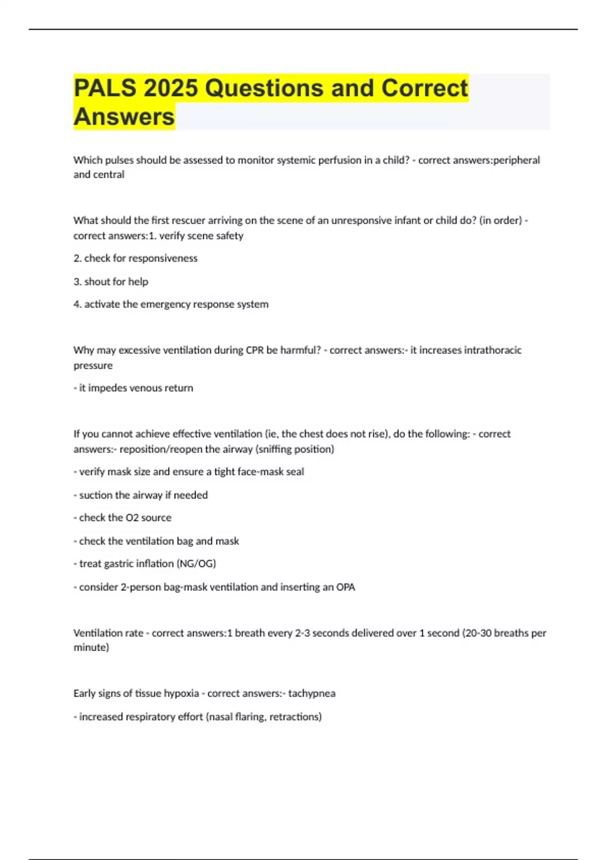 Ventilation rate - correct answers:1 breath every 2-3 seconds delivered over 1 second (20-30 breaths per