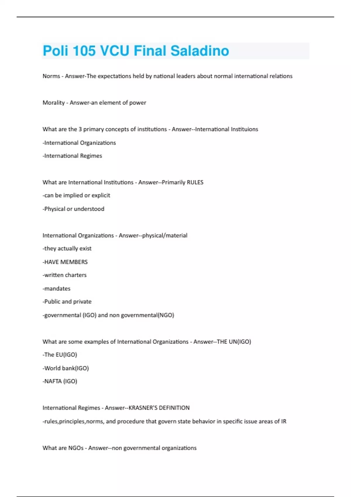 Poli 105 VCU Final Saladino exam (100% correct and graded A+)