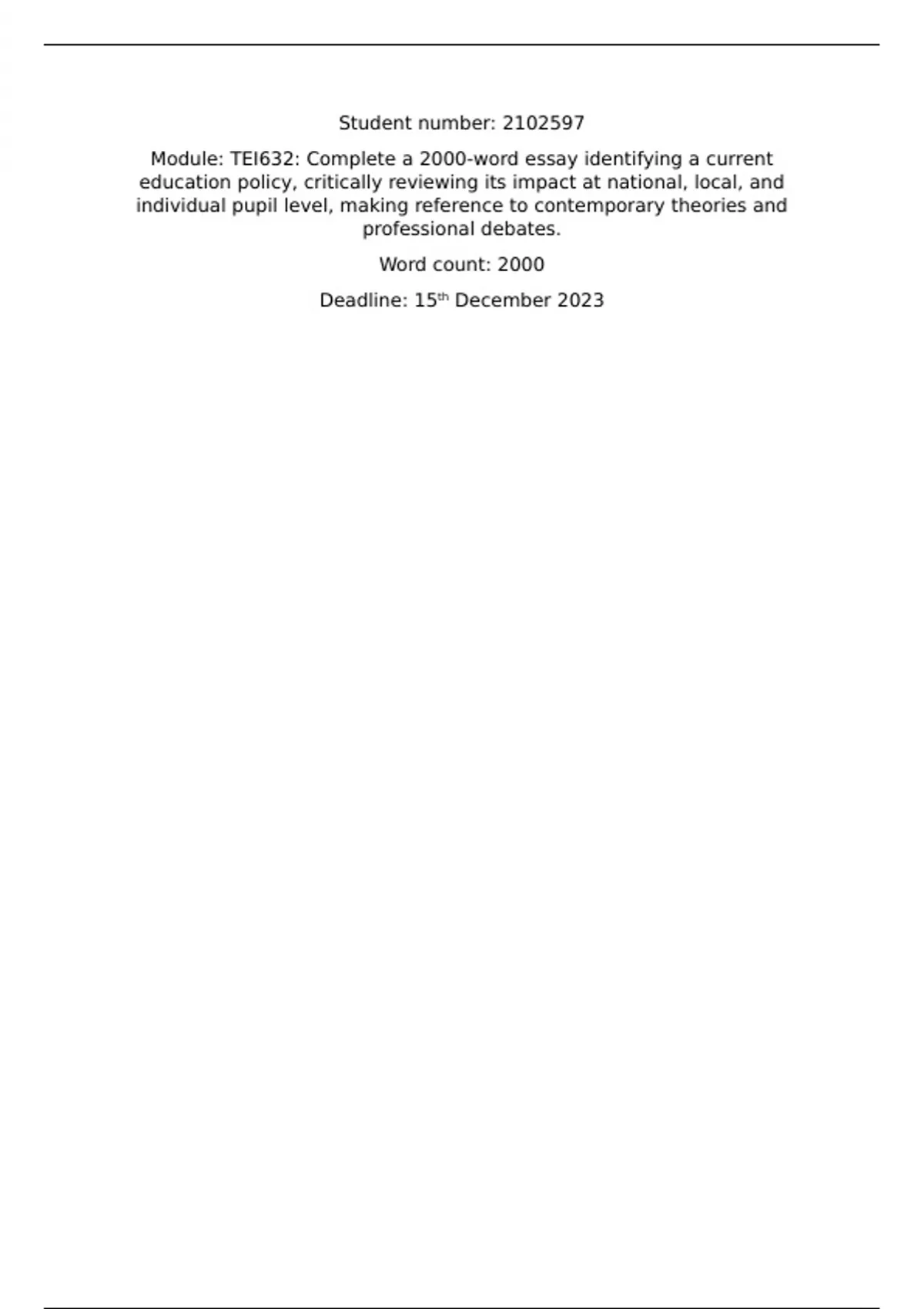 Module: TEI632: Complete a 2000-word essay identifying a current