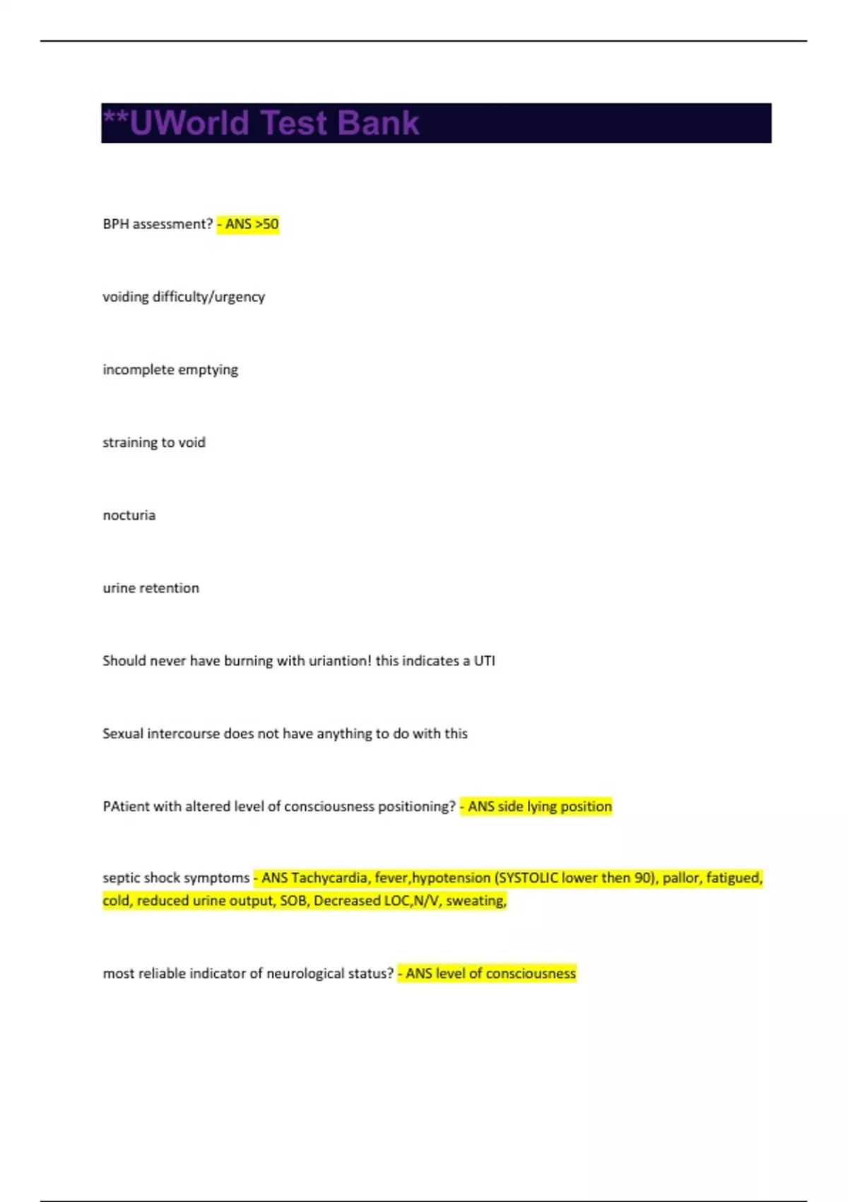 **UWorld Test Bank