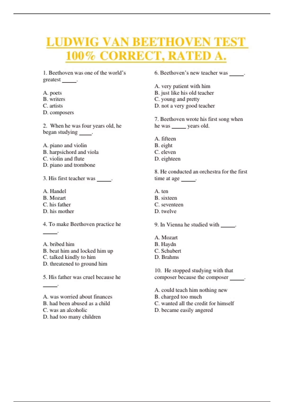 LUDWIG VAN BEETHOVEN TEST 100% CORRECT, RATED A.
