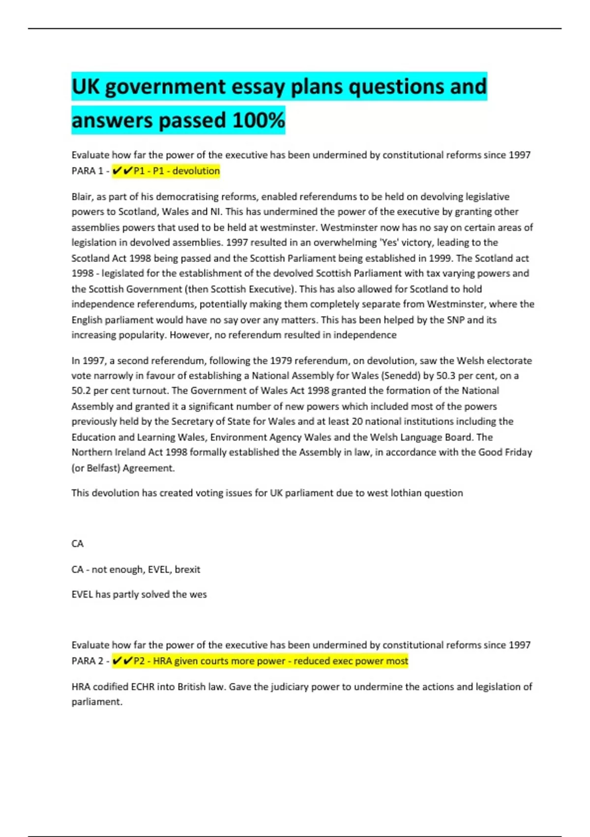Evaluate how far the power of the executive has been undermined by constitutional reforms since 1997