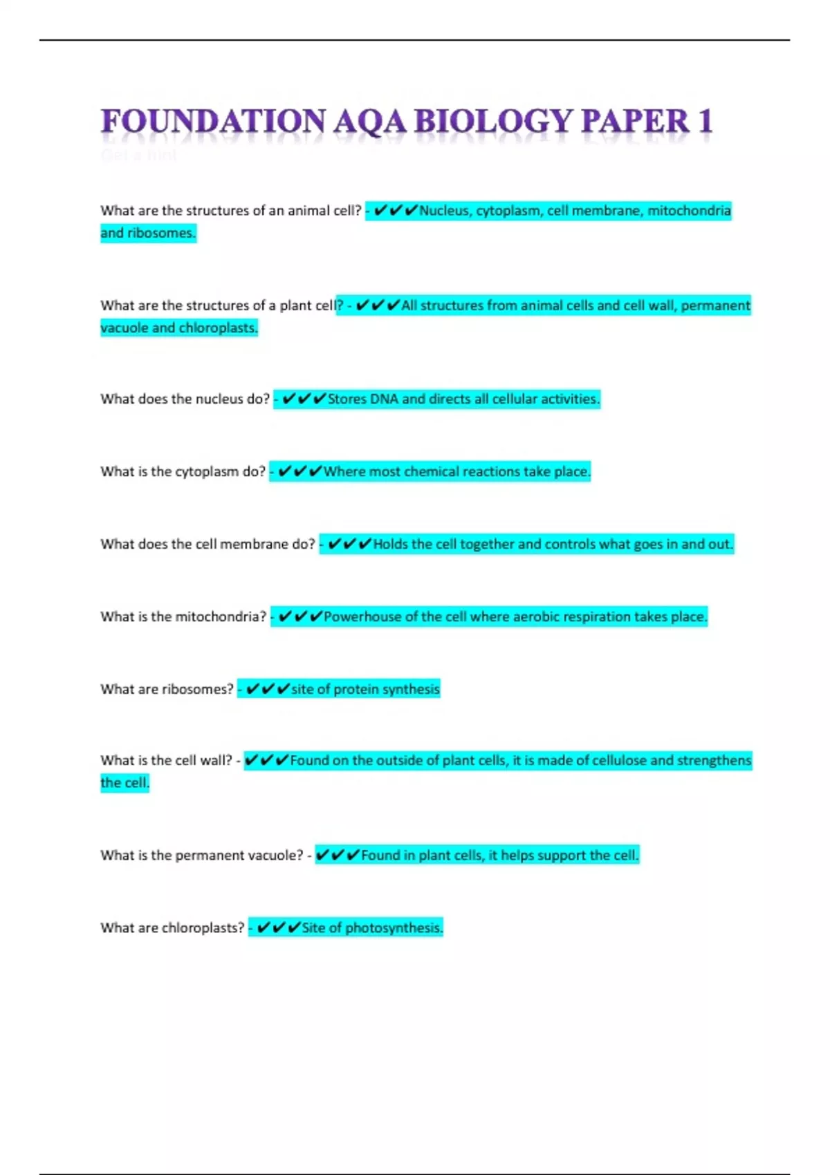 What are the structures of a plant cell? - ✔✔✔All structures from animal cells and cell wall, permanent