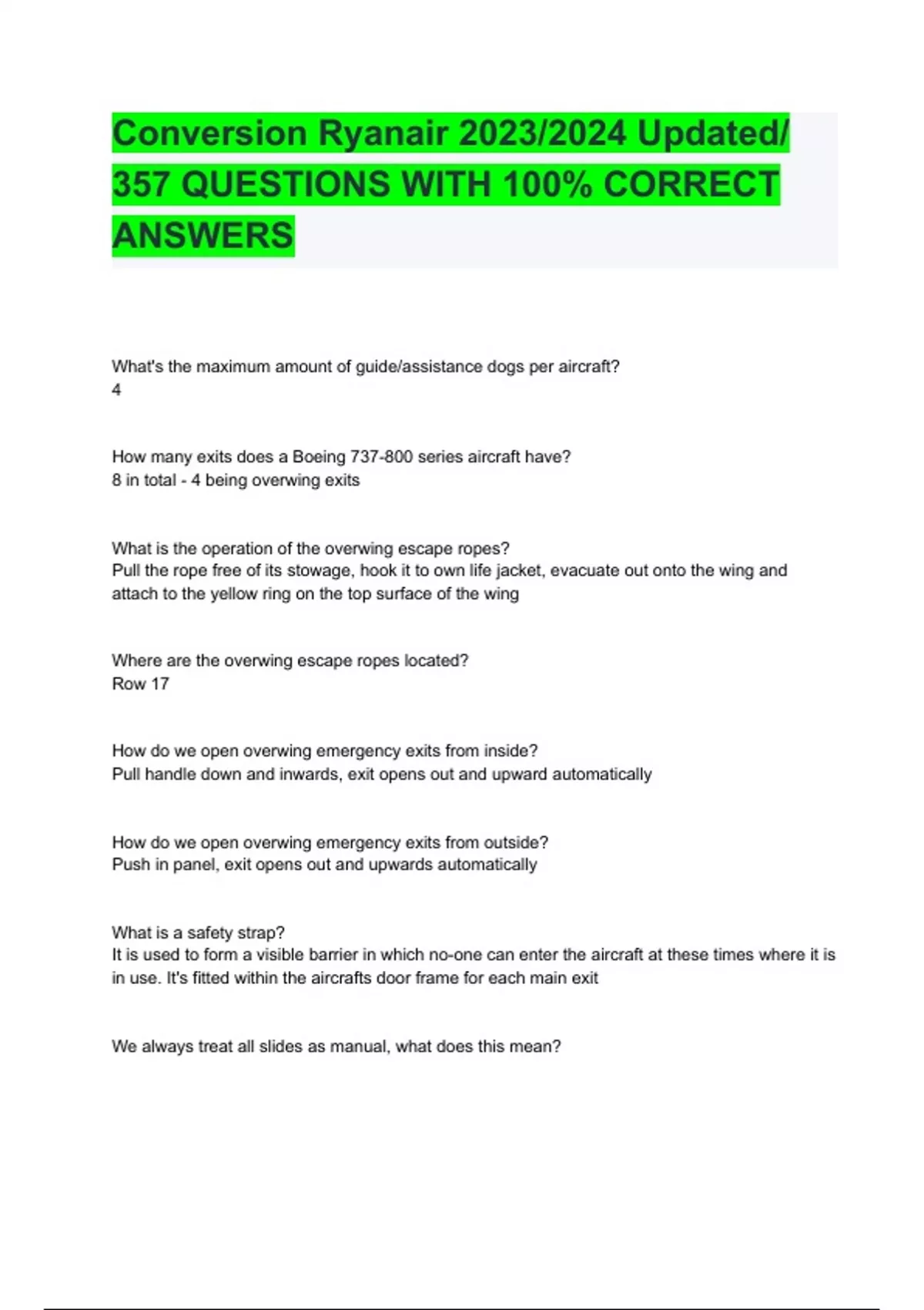 Conversion Ryanair 2023/2024 Updated/ 357 QUESTIONS WITH 100% CORRECT ANSWERS