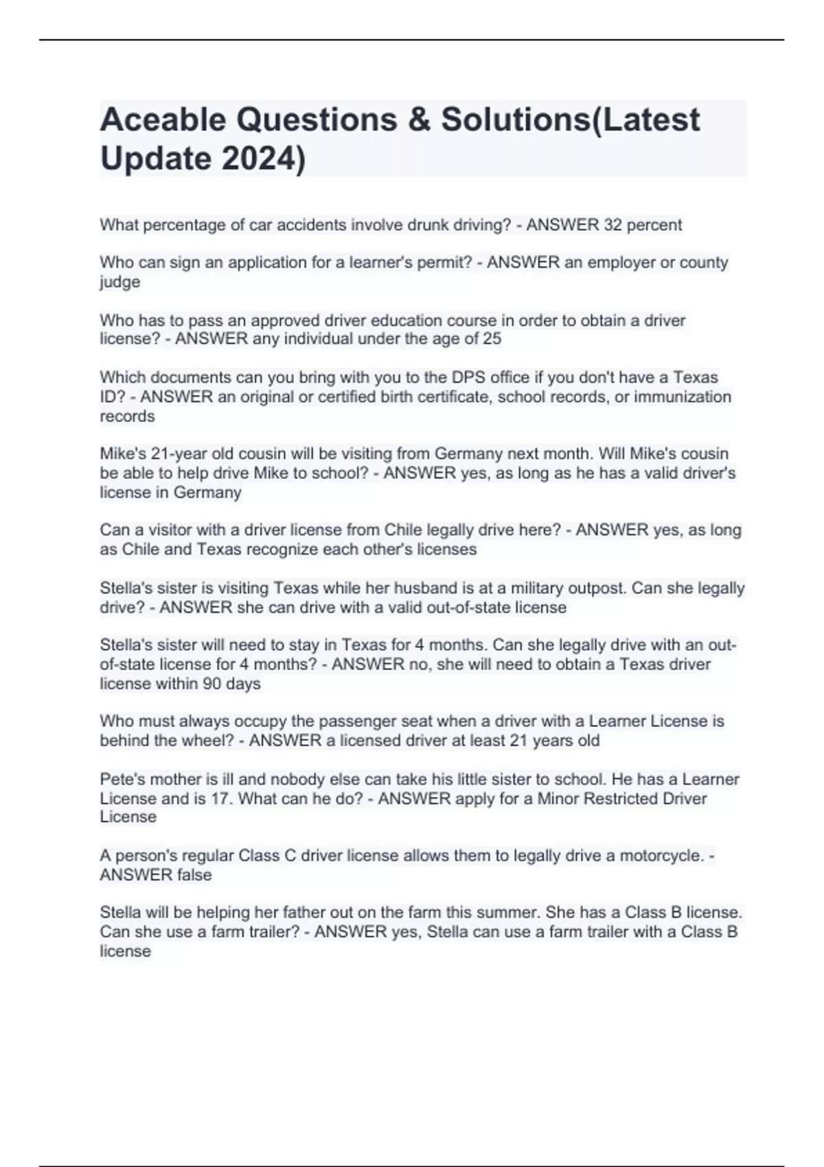 Aceable Questions & Solutions(Latest Update 2024)