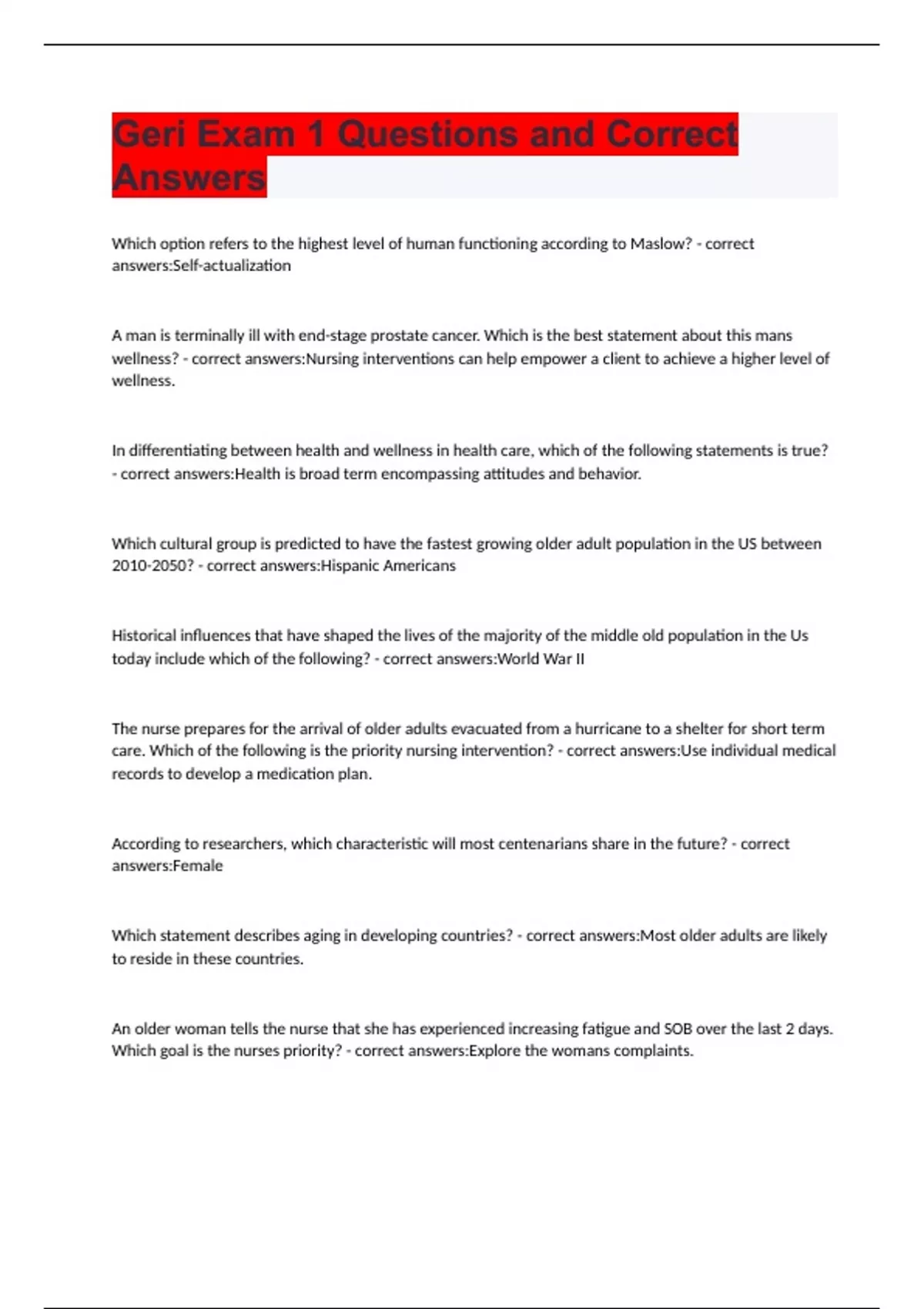 Geri Exam 1 Questions and Correct Answers.