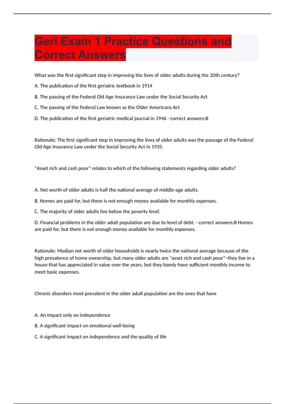 Geri Exam 1 Practice Questions and Correct Answers.