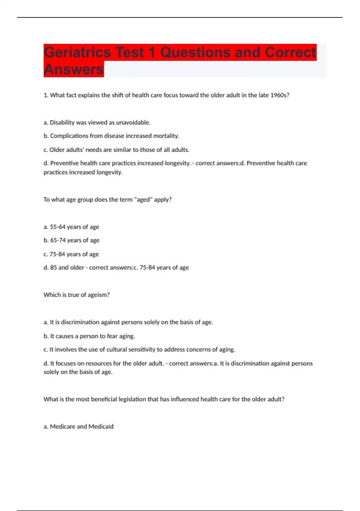 d. It focuses on resources for the older adult. - correct answers:a. It is discrimination against persons