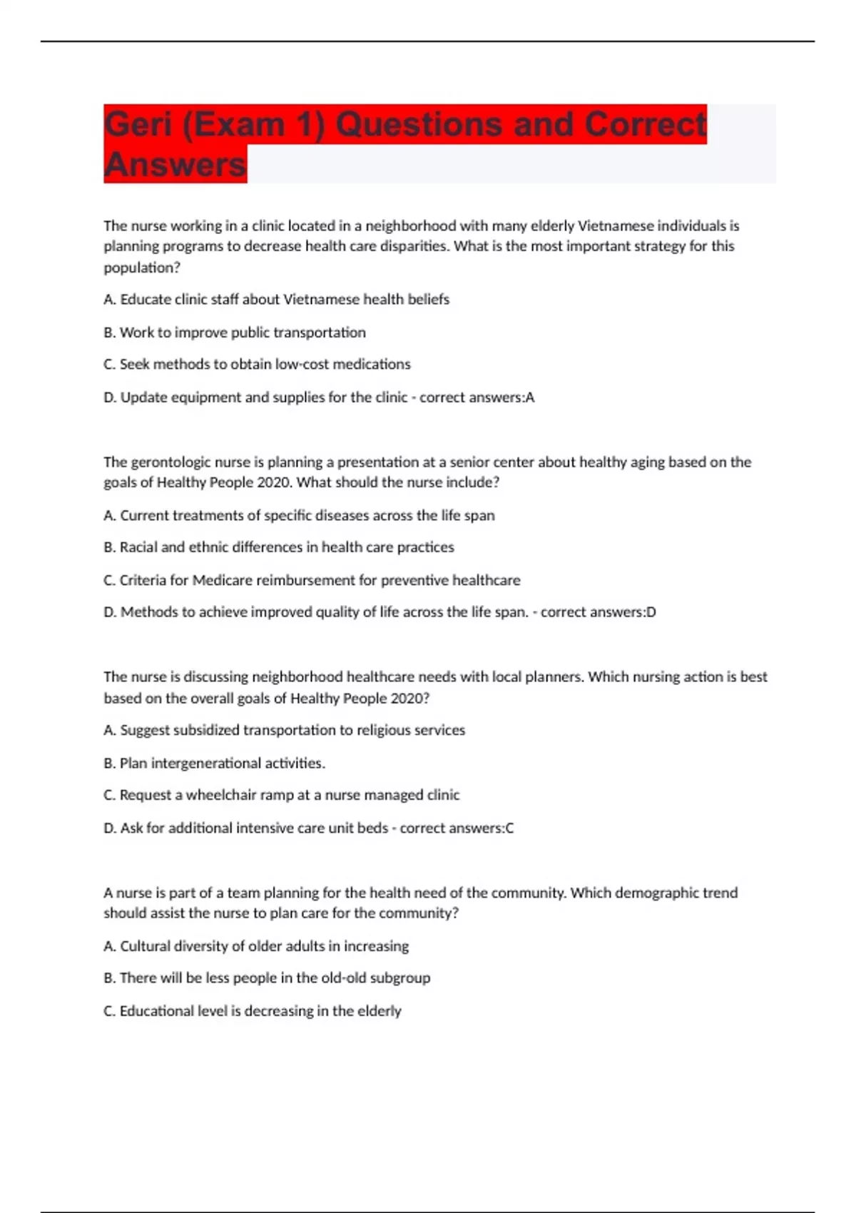 Geri (Exam 1) Questions and Correct