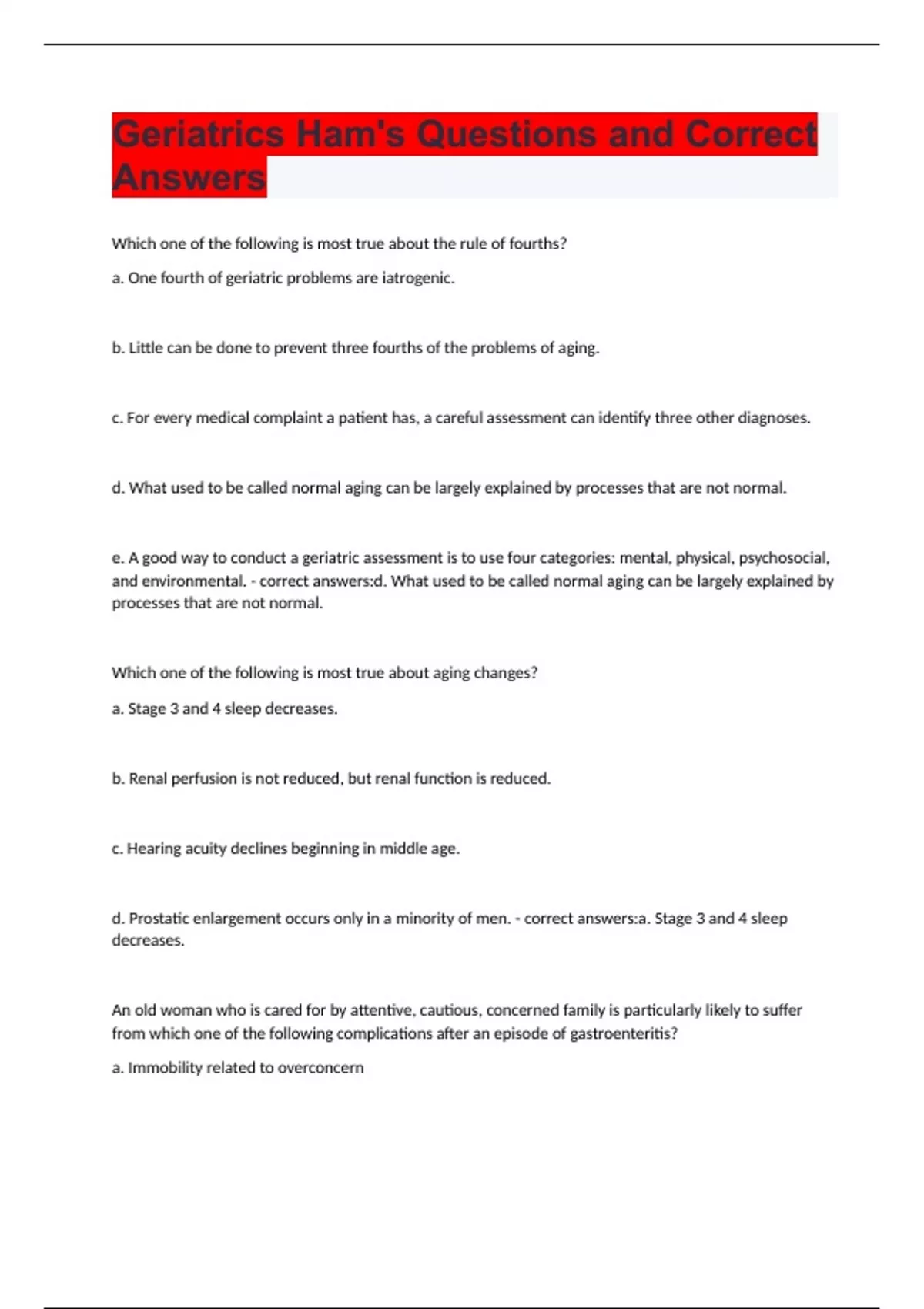 d. Prostatic enlargement occurs only in a minority of men. - correct answers:a. Stage 3 and 4 sleep