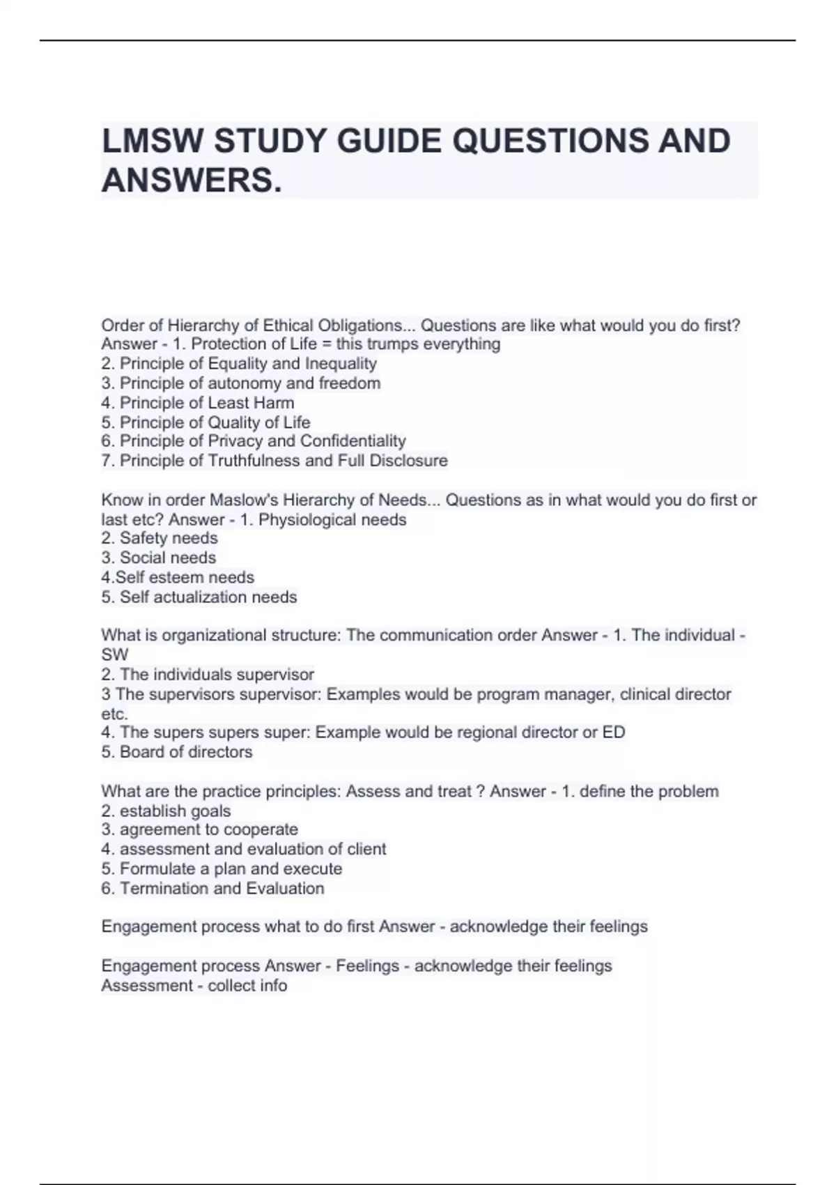 LMSW STUDY GUIDE QUESTIONS AND ANSWERS