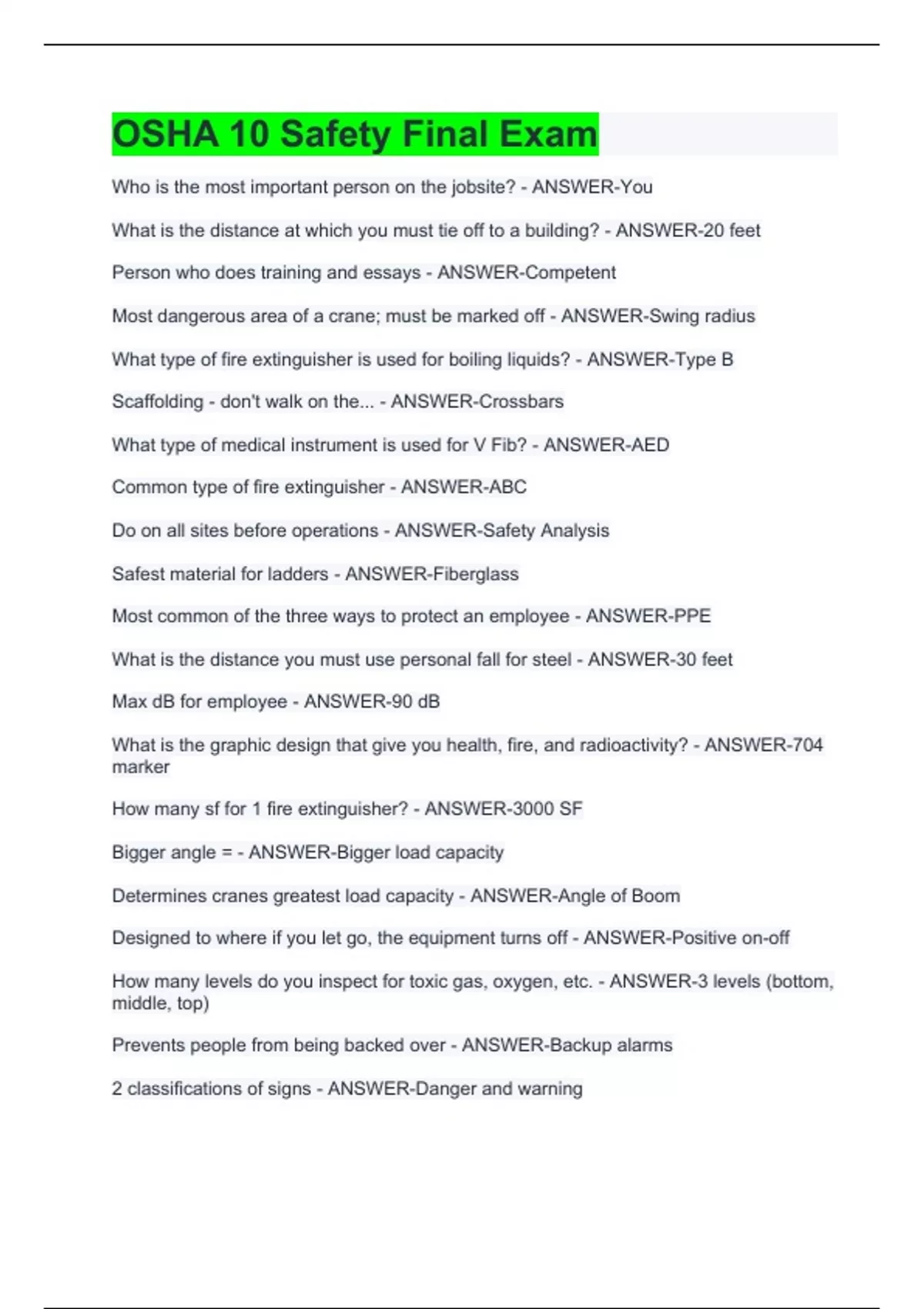 OSHA /OSHA-10/OSHA 10 Hour Exams Package Deal -Solved
