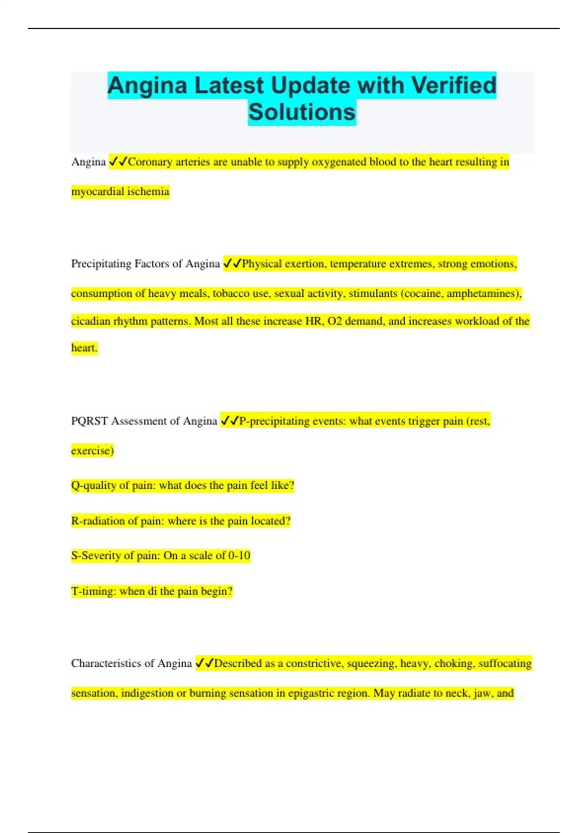 Angina Latest Update with Verified Solutions