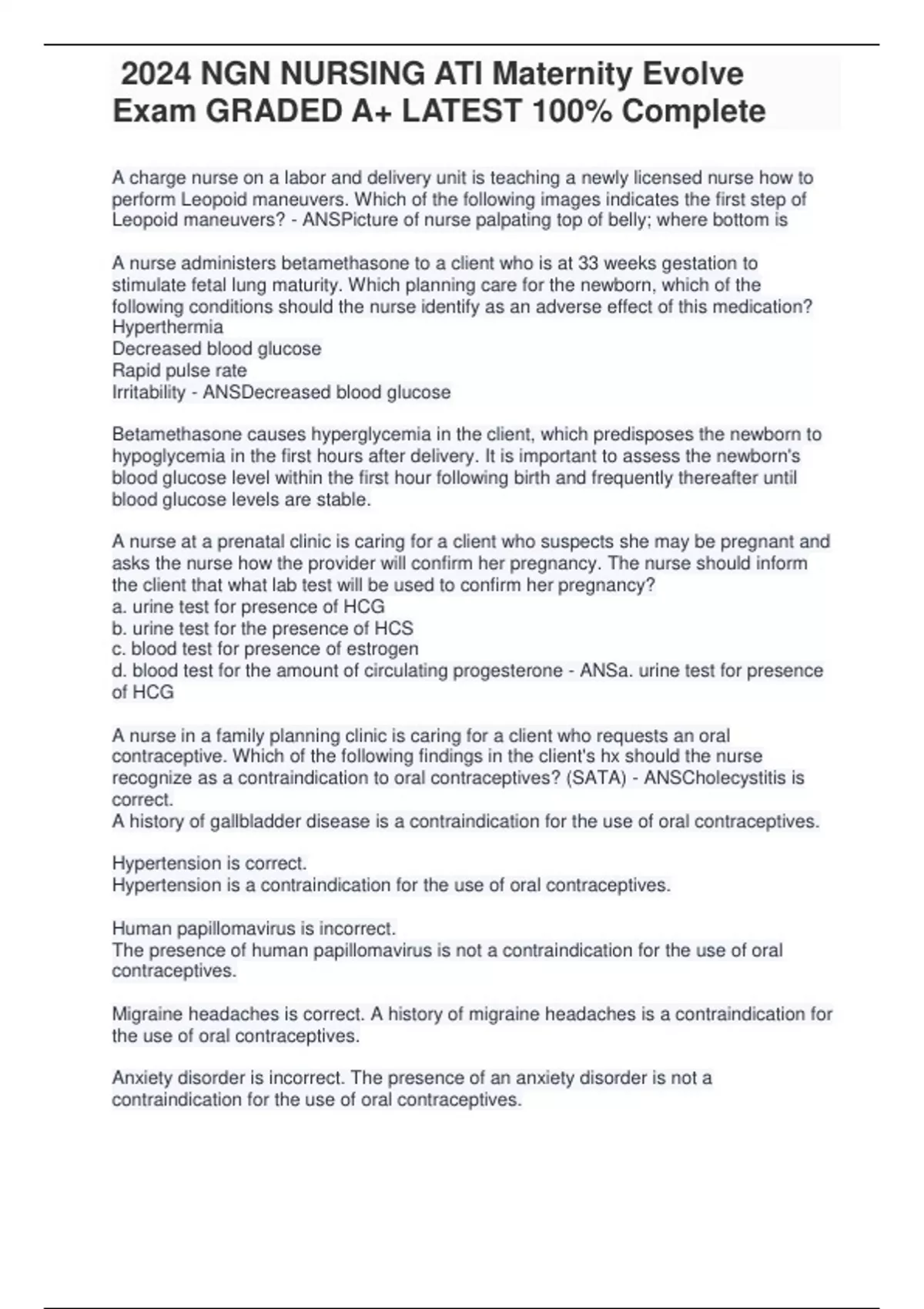 , 2024 NGN NURSING ATI Maternity Evolve
