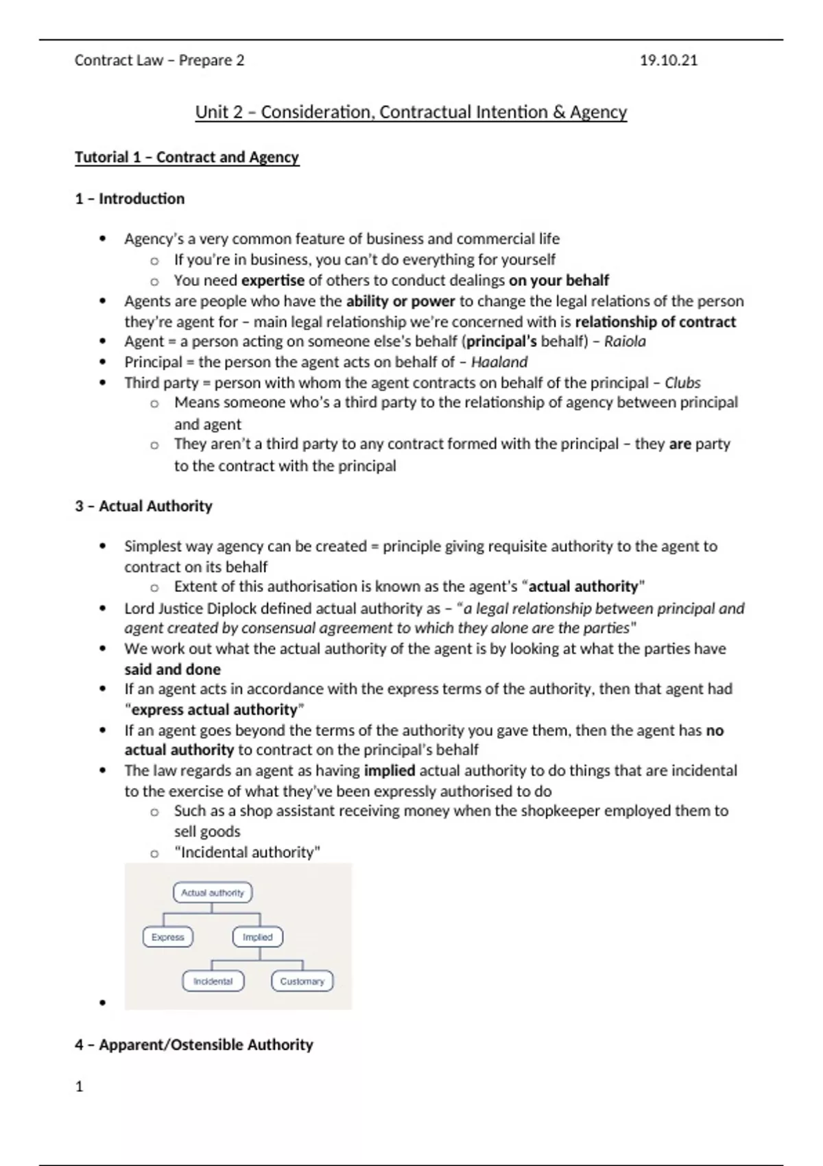Tutorial 1 – Contract and Agency