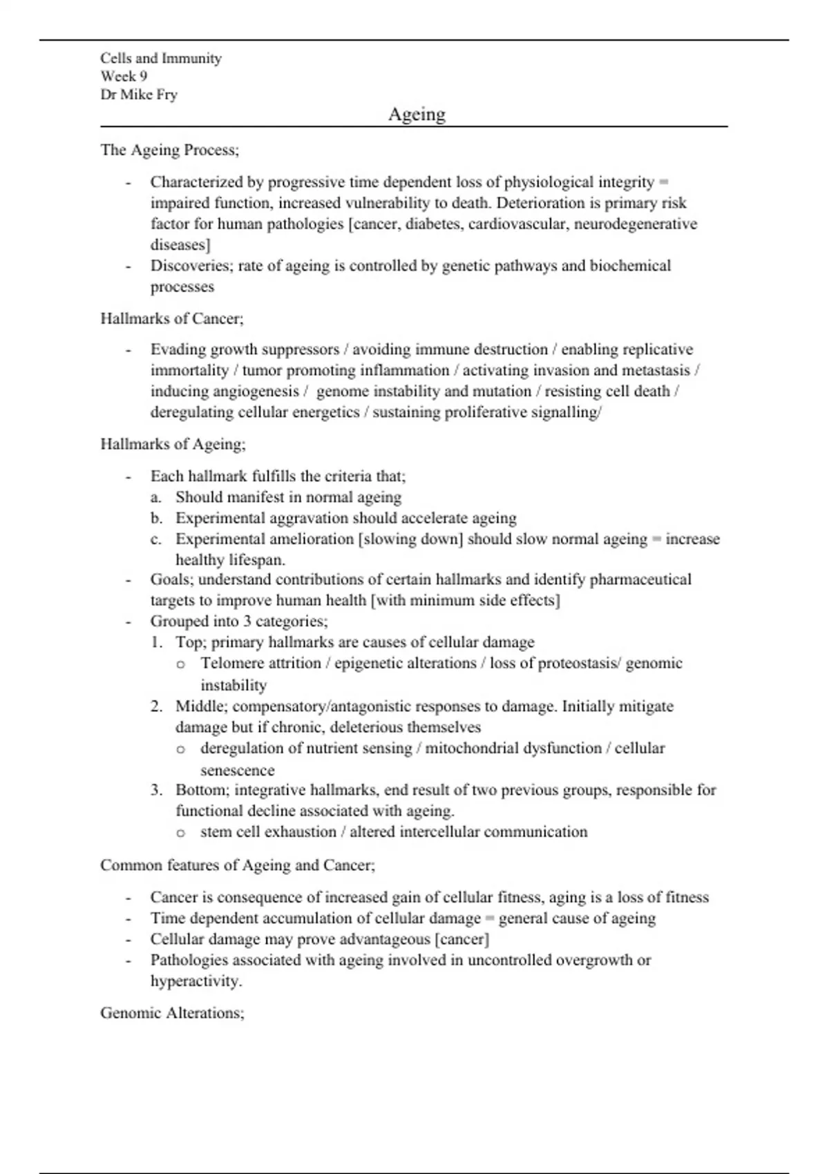Hallmarks of Ageing;