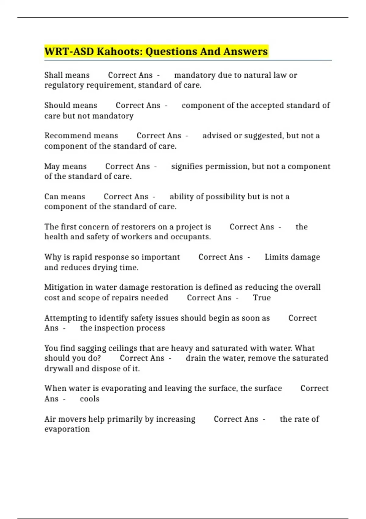 WRT-ASD Kahoots: Questions And Answers