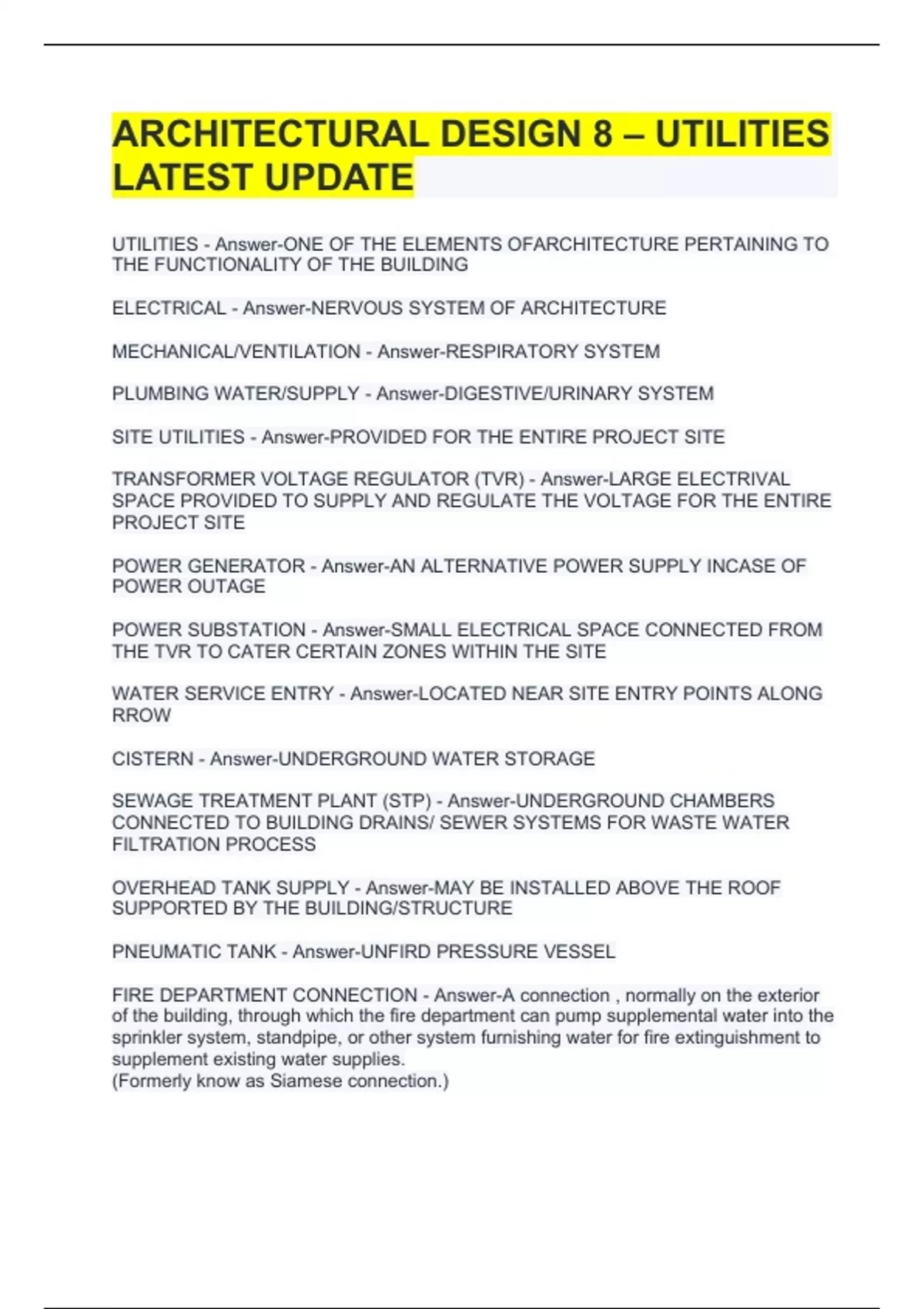 UTILITIES - Answer-ONE OF THE ELEMENTS OFARCHITECTURE PERTAINING TO