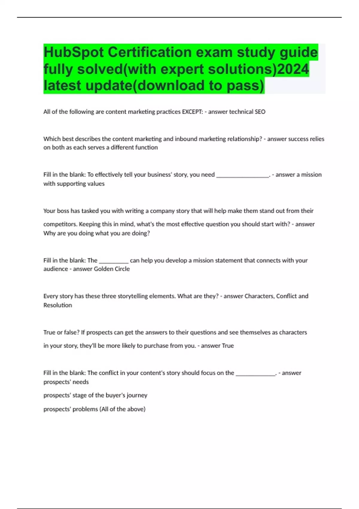 HubSpot Certification exam study guide fully solved(with expert solutions)2024